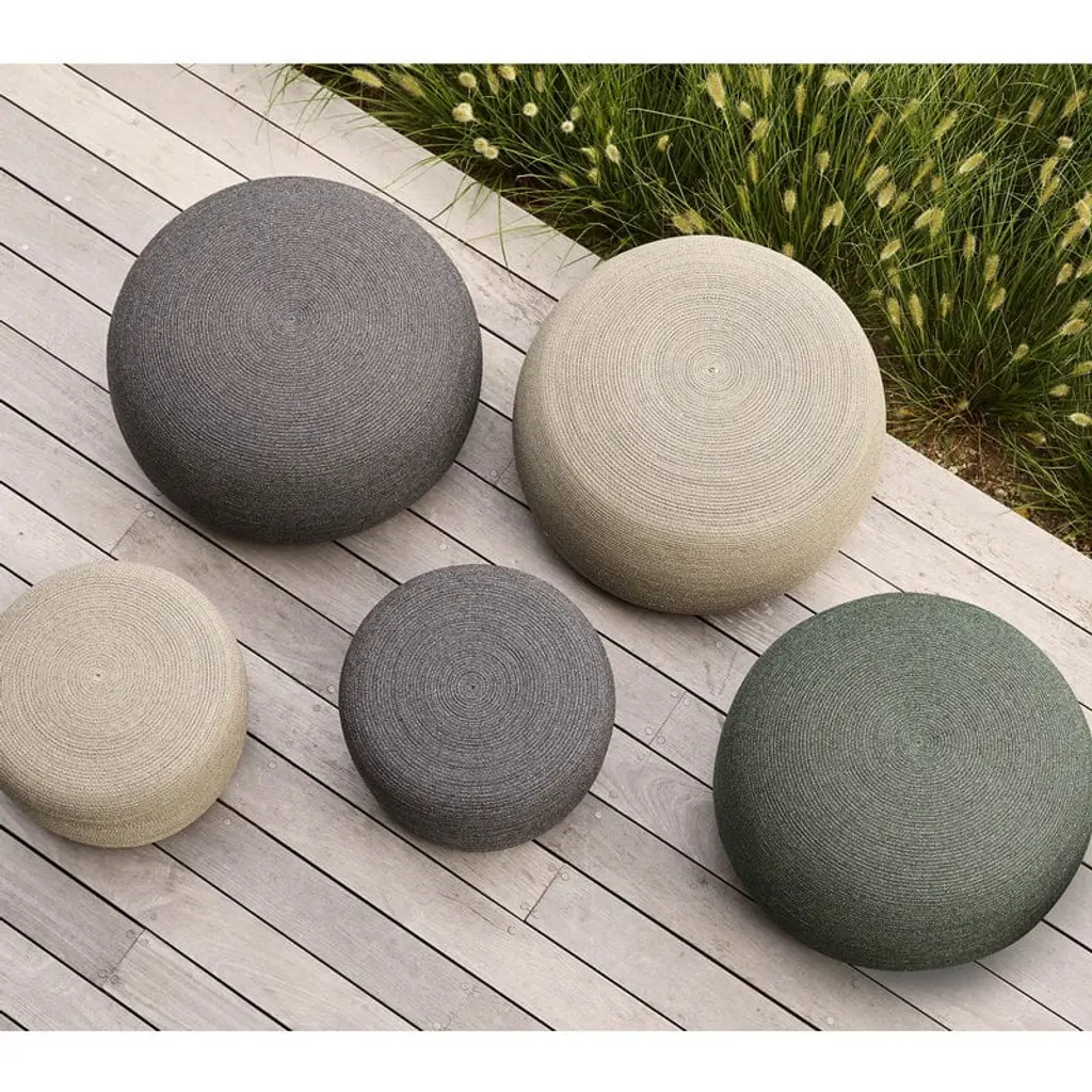 Cane-line's Circle footstool is a multifunctional piece of furniture for the balcony and garden, suitable as both a footstool and an extra seat, for both indoor and outdoor use. The footstool is made of antibacterial and allergy-friendly polypropylene fabric, and its breathable filling dries quickly – an excellent feature for outdoor use, especially in areas where the weather may be fickle. During the winter or in particularly bad weather, it is advisable to keep the footstool protected or indoors.