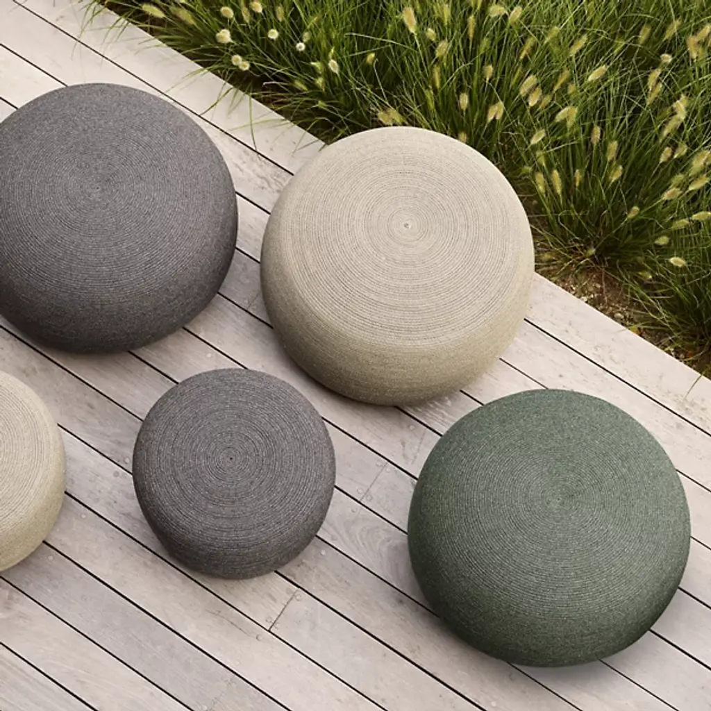Kick back with the Circle Round Footstool by Cane-line. This footstool lives up to its namesake by embodying a recognizably geometric form. Throughout its composition, you will find a recurring ring pattern that gives the piece its classy appearance. The soft rope serves as the material of choice for optimal heel support. Keep the Circle Round Footstool in close proximity to your contemporary sofa and effortlessly attain that alleviated state of being.