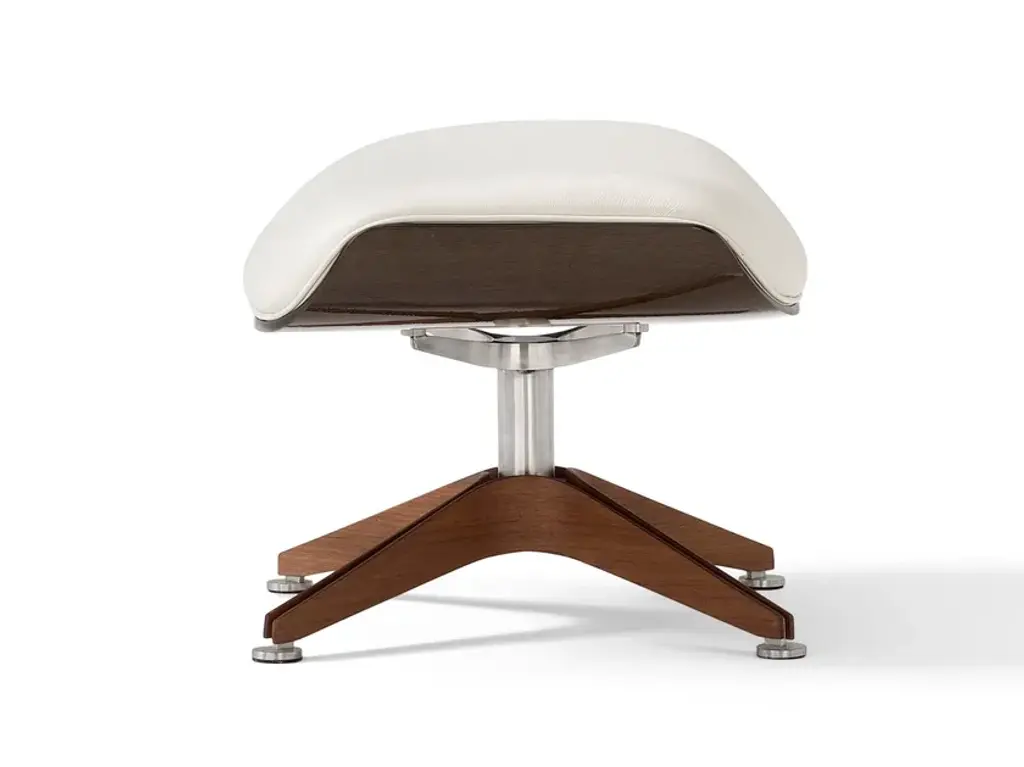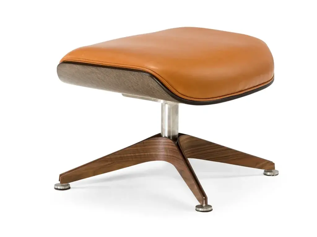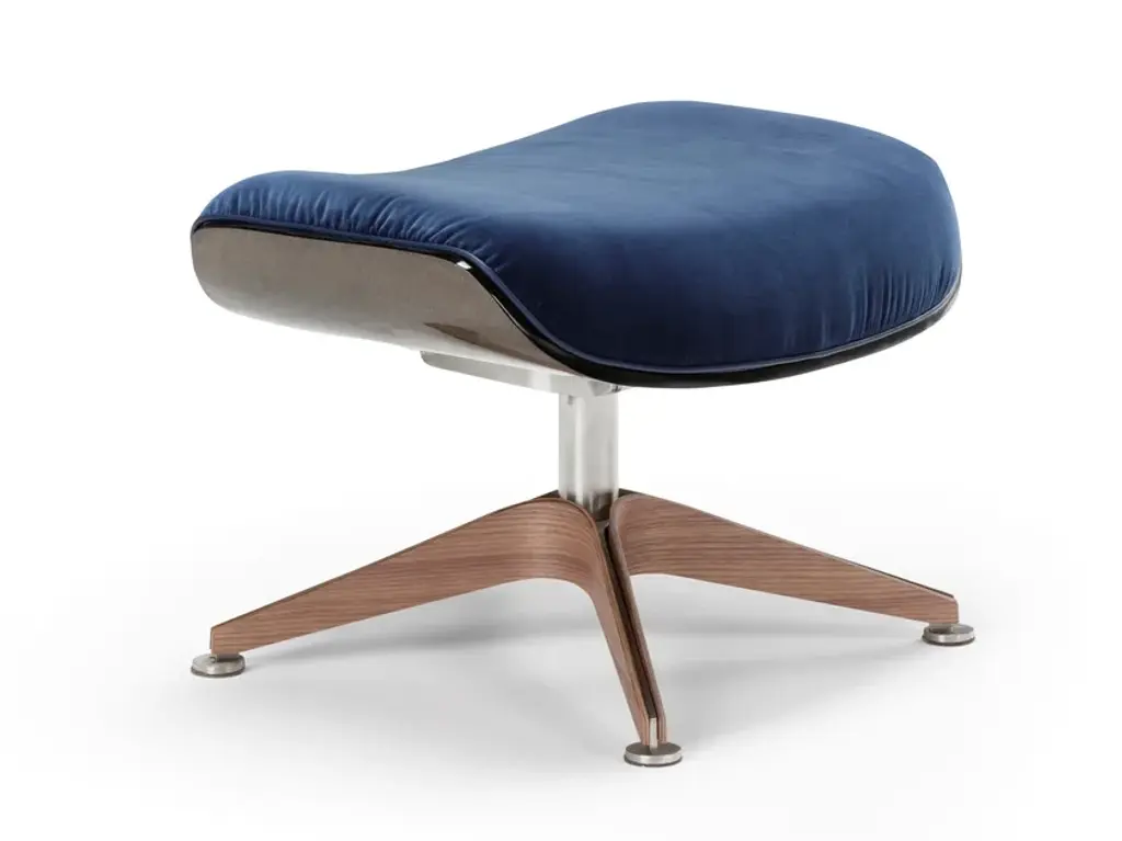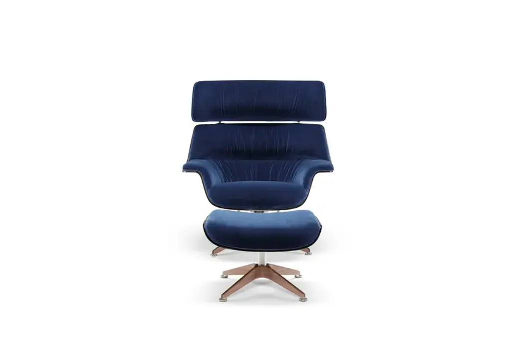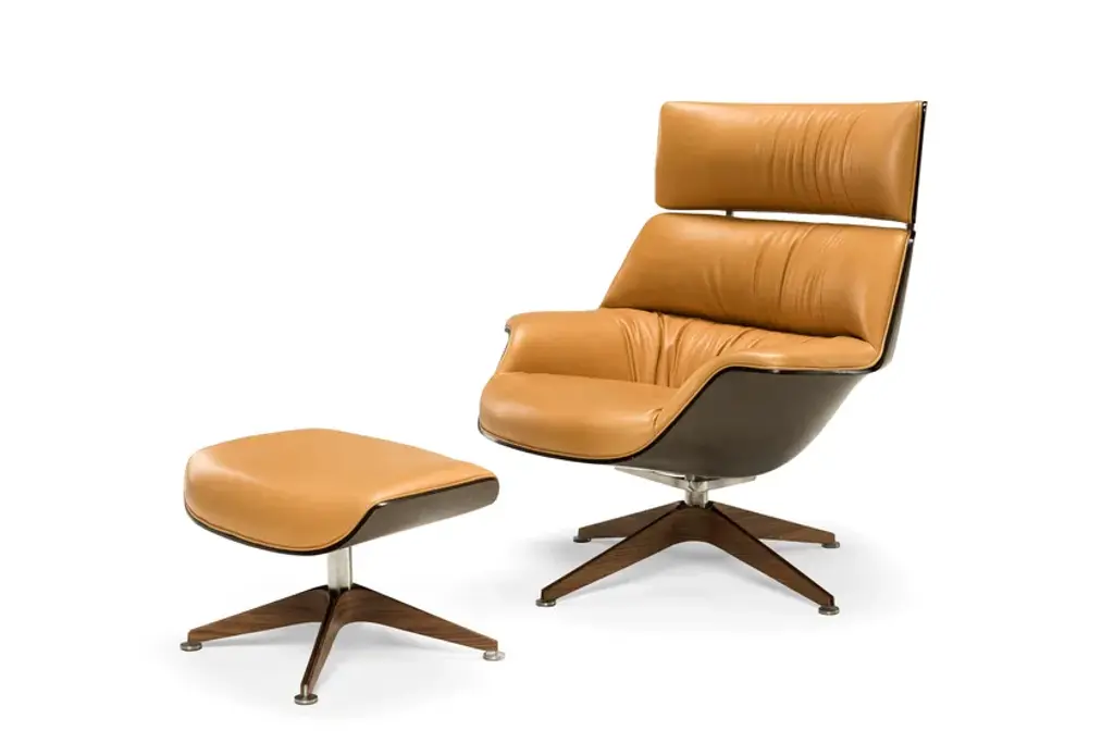 COACH is a comfortable and generous armchair, characterized by soft and enveloping lines. The shell-shaped structure in linen composite welcomes the seat and the wide backrest upholstered in leather or fabric to offer maximum comfort.The base is available in two variants: a light and discreet structure in brushed stainless steel, or an elegant star base in brushed stainless steel and walnut wood. For a total relaxation experience, COACH is also available in the version with headrest and accompanied by a padded pouf