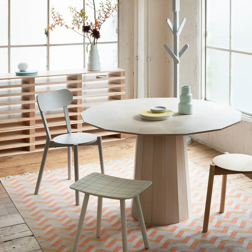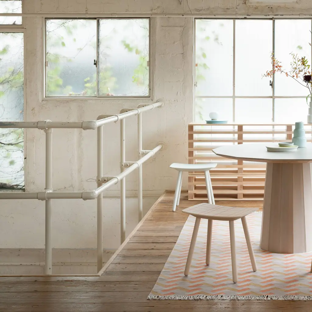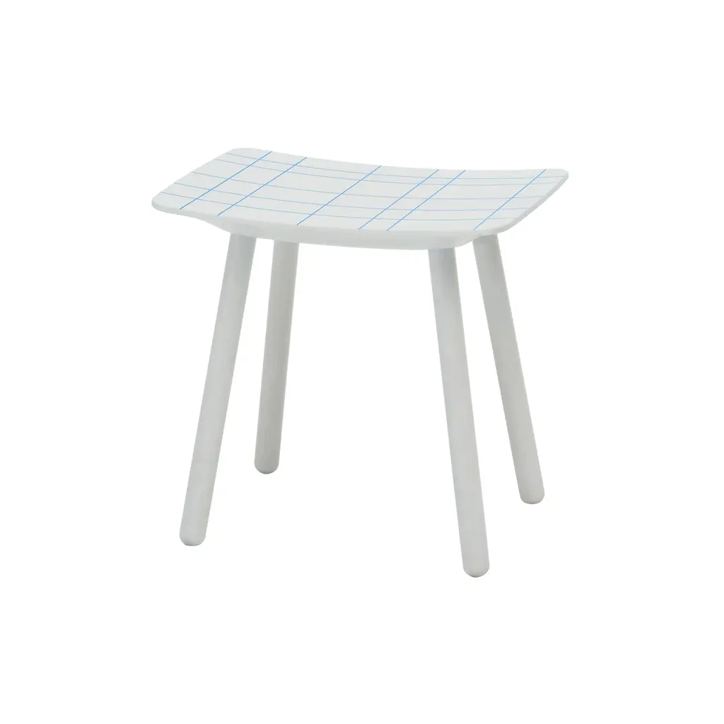 Here's a good argument for staying on the grid. With the Colour Stool, design superstars Scholten & Baijings pair their signature linear legerdemain with the heritage craftsmanship of Japanese cult brand Karimoku New Standard. The grid lines on this stool are fine indentations, spray-painted and then sanded away so that the bright hue remains only in the grooves. And the graceful curve of the seat as well as the anchoring joinery reflect time-honored standards of exacting workmanship. Realized in either warm or cool tones of whitewashed itaya, the prized Japanese maple, with corresponding pink or blue accent tones. Handy and compact, yet it packs a big decorative punch in spaces both small and large.