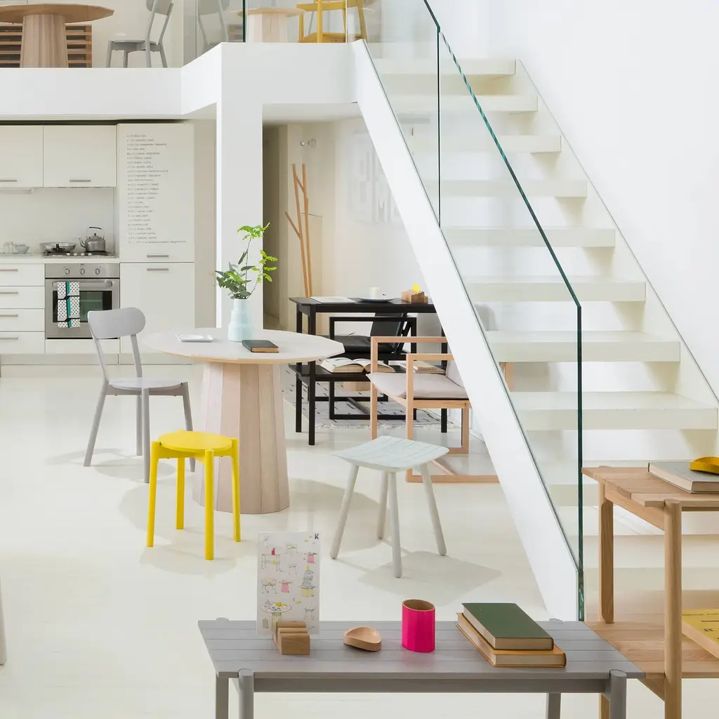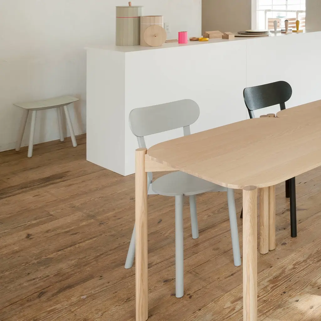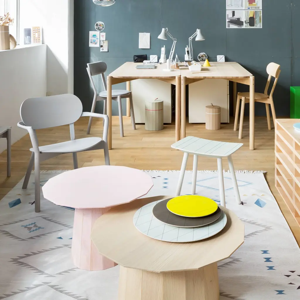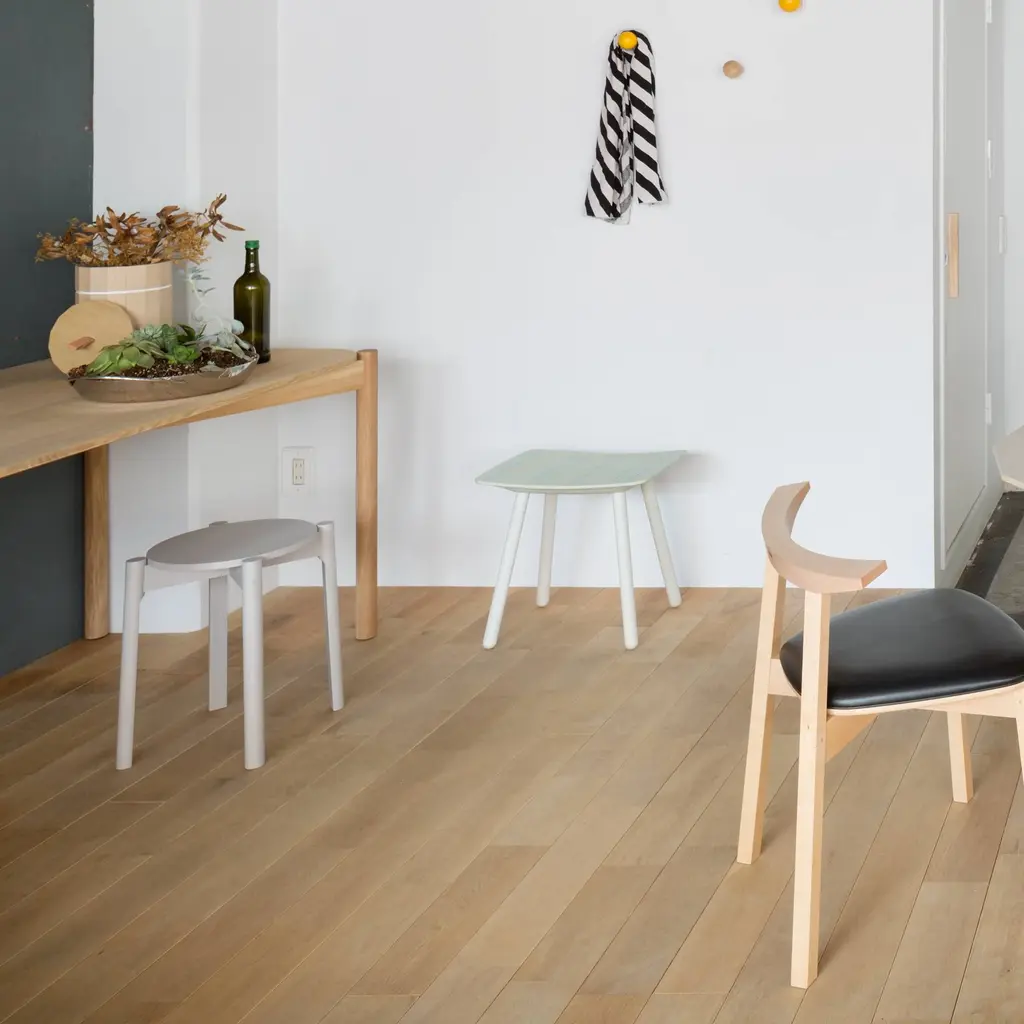 Here's a good argument for staying on the grid. With the Colour Stool, design superstars Scholten & Baijings pair their signature linear legerdemain with the heritage craftsmanship of Japanese cult brand Karimoku New Standard. The grid lines on this stool are fine indentations, spray-painted and then sanded away so that the bright hue remains only in the grooves. And the graceful curve of the seat as well as the anchoring joinery reflect time-honored standards of exacting workmanship. Realized in either warm or cool tones of whitewashed itaya, the prized Japanese maple, with corresponding pink or blue accent tones. Handy and compact, yet it packs a big decorative punch in spaces both small and large.