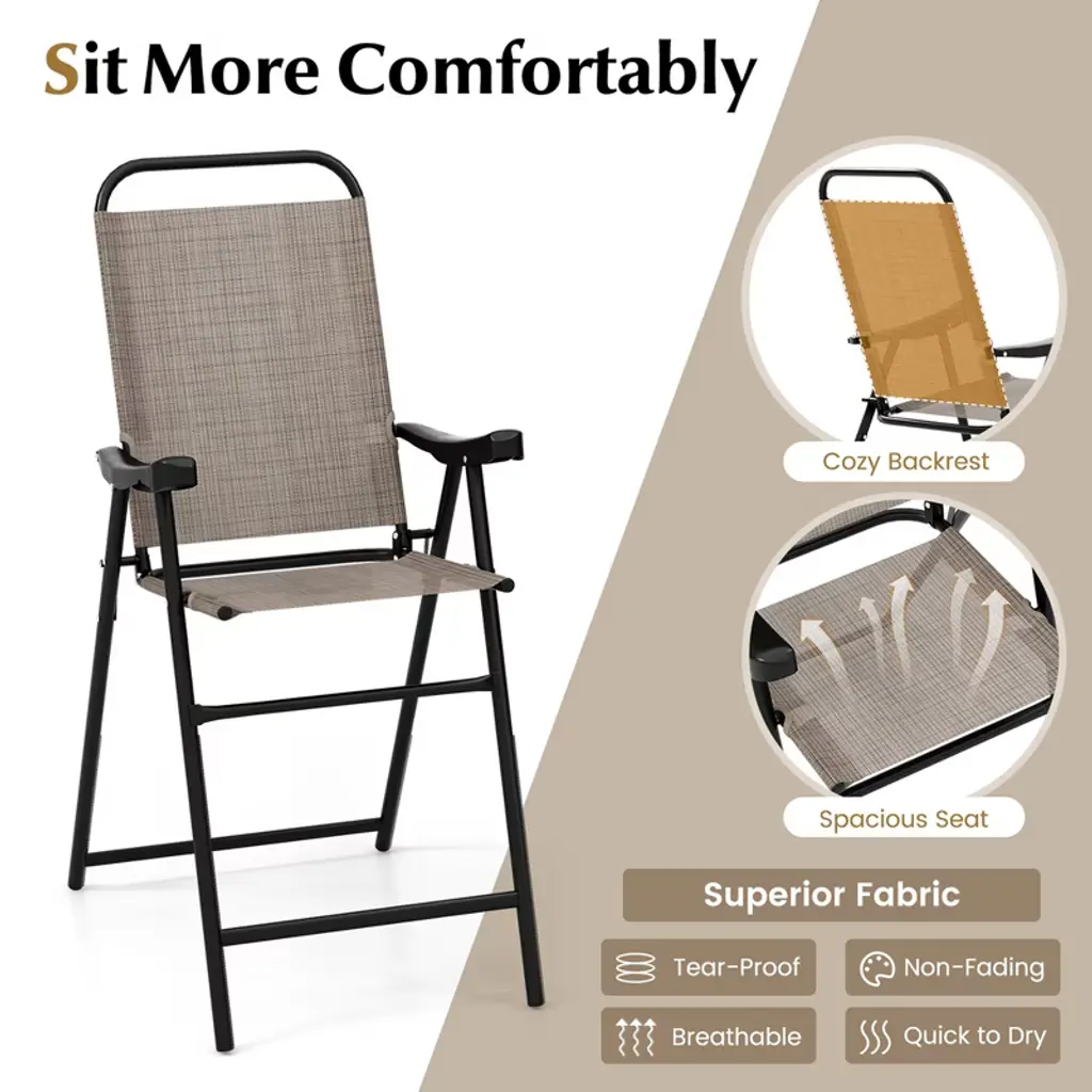 Costway 2 Pcs Patio Bar Chair Folding Bar Height Metal Frame With Footrest Garden Coffee