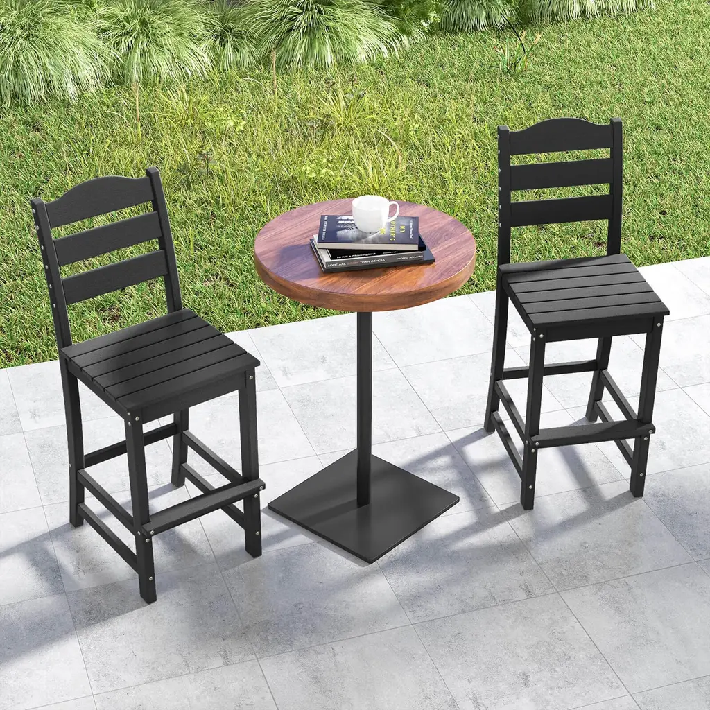 Costway Outdoor Hdpe Bar Stool Patio Tall Chair Backrest Footrest All - See Details - Black-1 Pcs