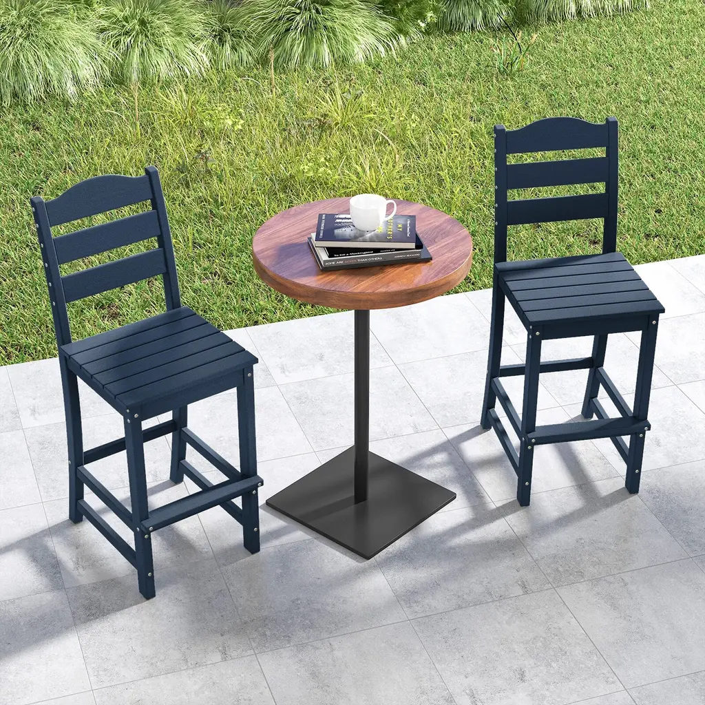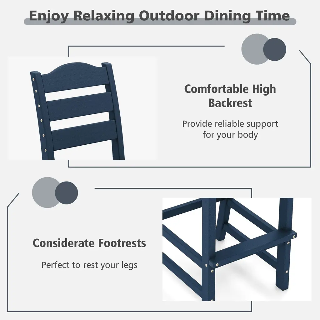 Costway Outdoor Hdpe Bar Stool Patio Tall Chair Backrest Footrest All - See Details - Navy-1 Pcs