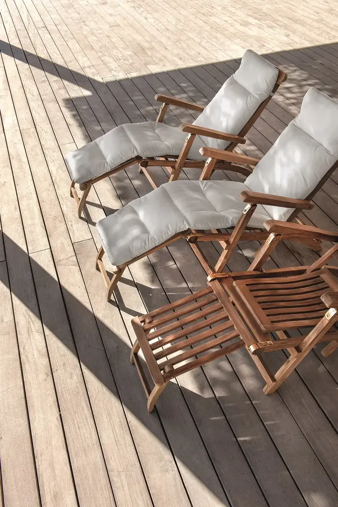 The Cruise folding chaise longue has almost literary charm, with brass details with an irresistible vintage feel.