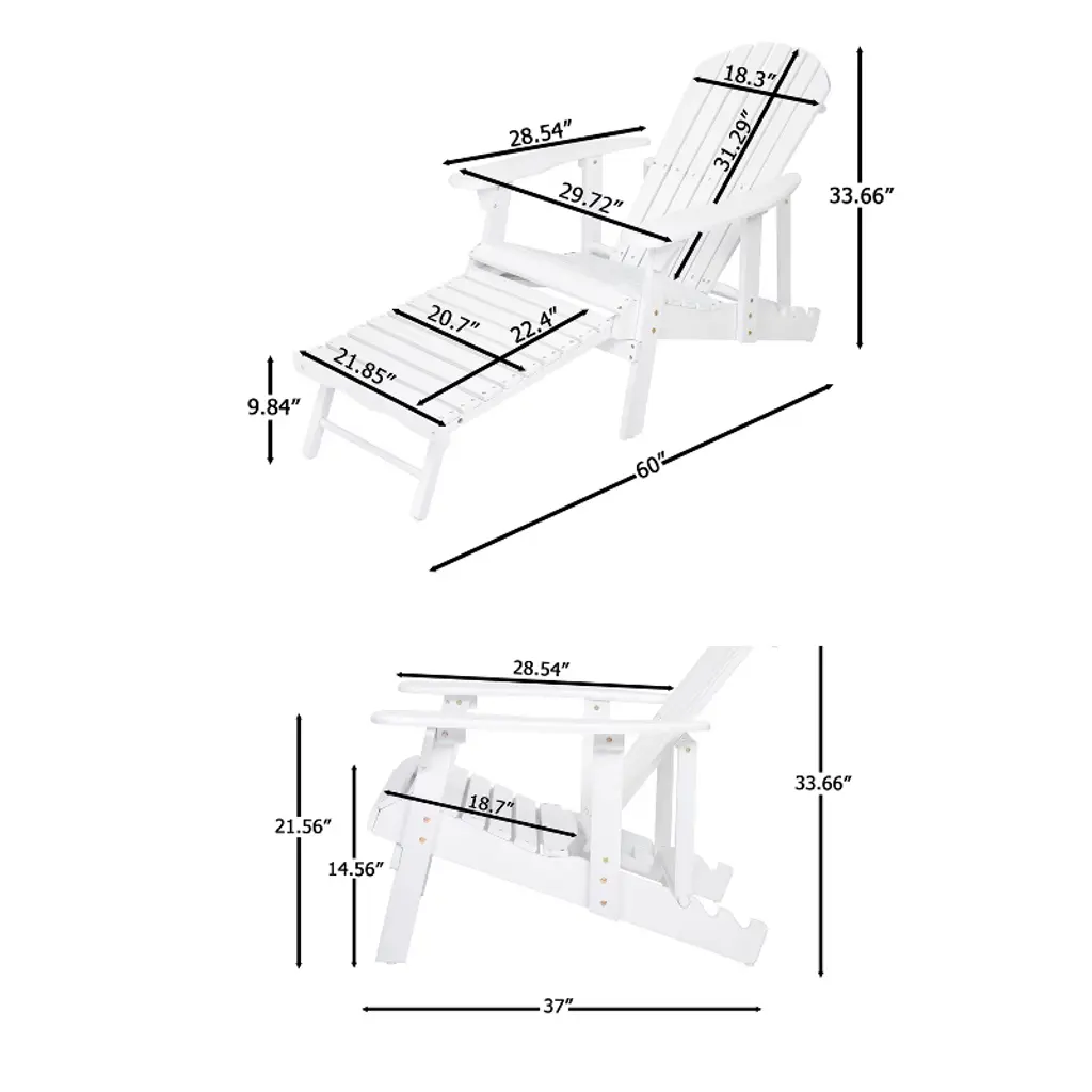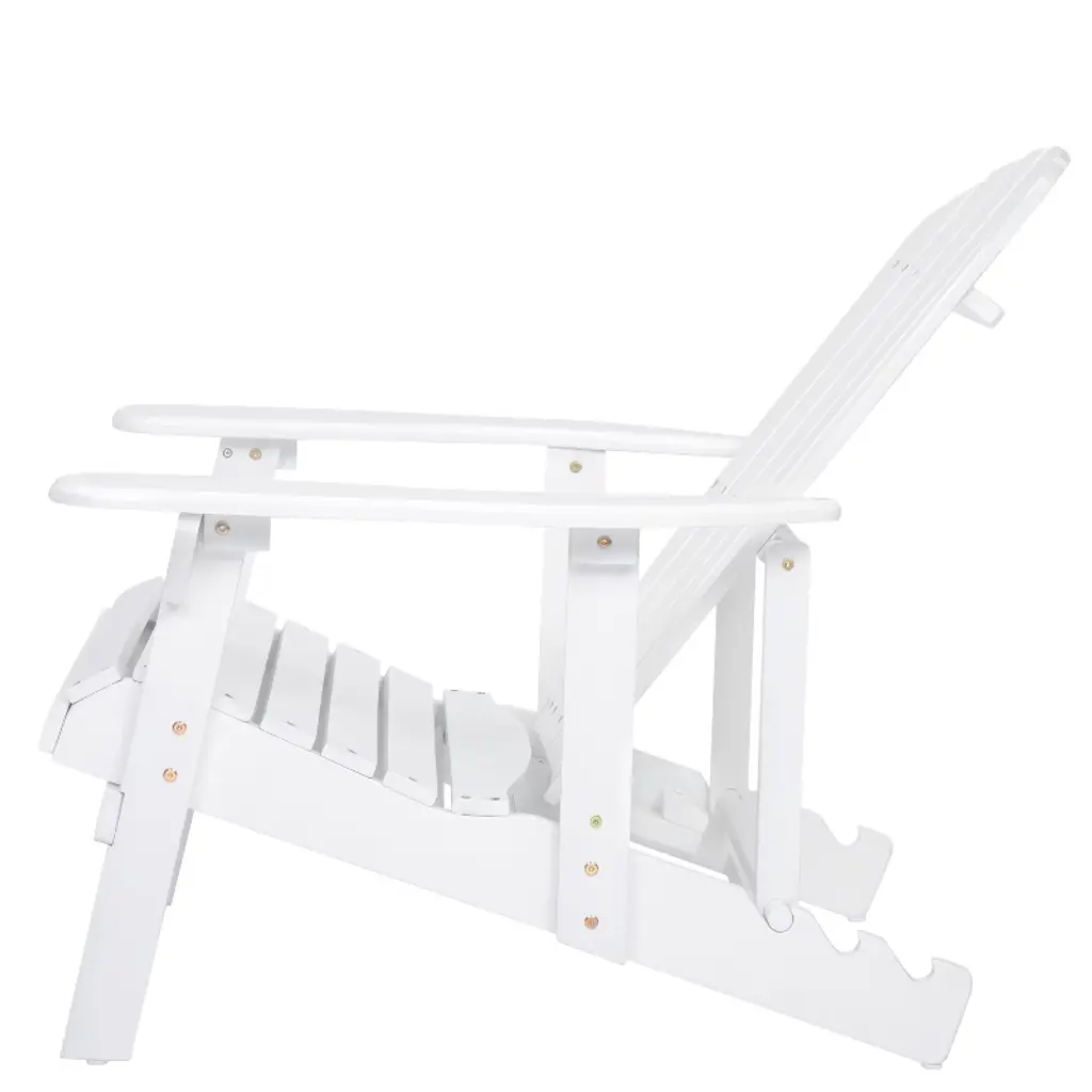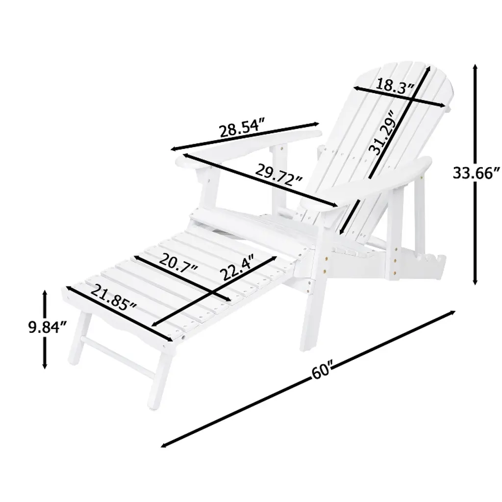 Dexmalle Rustic Patio Acacia Wood Foldable Slat Chair With Pull-out Footrest,white