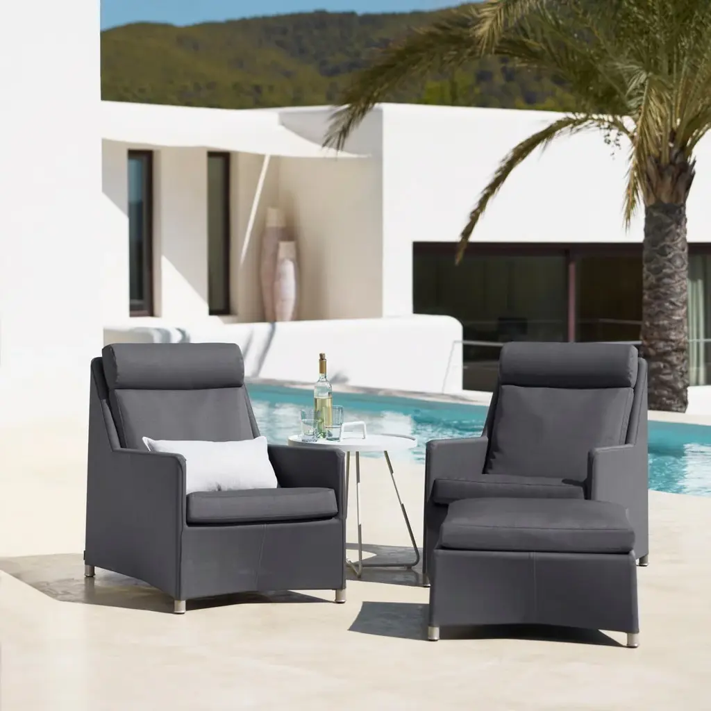 A practical outdoor garden footstool that matches the comfort and luxury of the Diamond garden lounge set. You are able to remove the Sunbrella cushion, and by combining with our club tray in aluminum, you can use the footstool as a small coffee table. All Diamond lounge furniture can be left outside all year round, and is practically maintenance free. Sunbrella Natte cushion included.