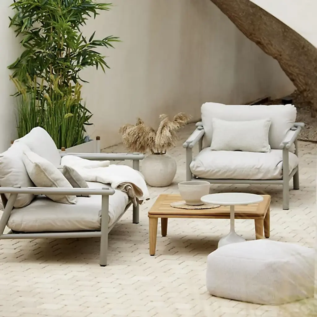 Experience enhanced relaxation with the Divine Outdoor Footstool from Cane-line, designed for supreme comfort. This versatile piece blends seamlessly into any indoor or outdoor setting, marrying comfort with style effortlessly. The Divine Outdoor Footstool caters to diverse tastes, from cozy hand-crocheted charm to sleek modern design. For outdoor use, we advise covering or storing the footstool indoors during autumn and winter to prolong its lifespan and maintain its pristine condition.