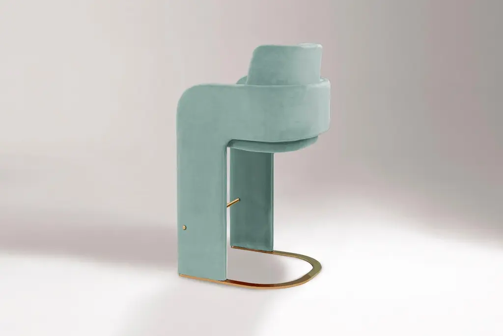 Dooq Bar Chair With Celadon Soft Velvet And Brass Footrest Odisseia