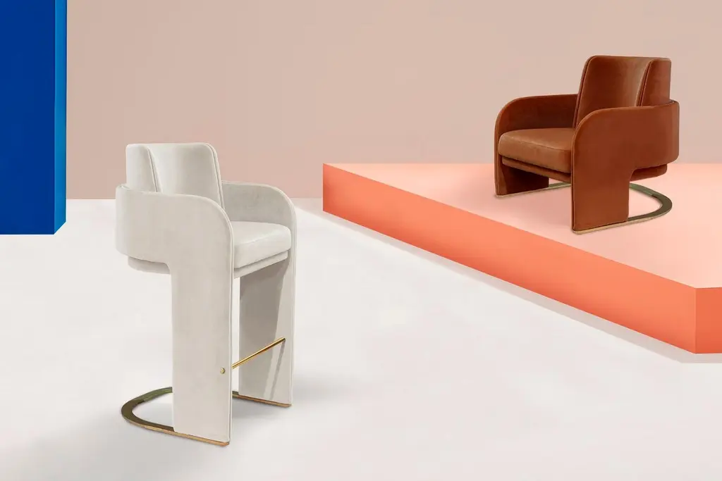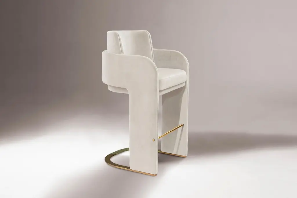 Dooq Bar Chair With Soft Velvet And Brass Footrest Odisseia