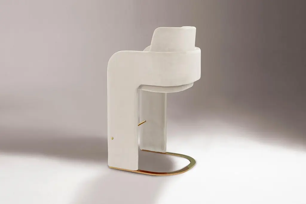 Odisseia bar chair embodies the aesthetic spirit of the space age, a new kind of discreet luxury and comfort inspired by a futuristic era created by new visual experiences and concepts of the future. This effortless but striking piece insinuates a lux vision of the home of the future, as a new order of being. Made to Order.If you are planning on ordering an upholstery item with COM upholstery, please follow these instructions: - Let us know that you are shipping fabric to us prior to shipping, as we will need you to fill a form;- All fabrics must be shipped to the company DOOQ, LDA, and no other name;- Send us the fabric invoice so we can present it to portuguese customs so the fabric can be released;- Our company must appear on the fabric invoice as "SHIP TO" only, not as "BILL TO" or "SOLD TO"- Our company has the right to refuse acceptance of fabric/leather if the shipment of such material ignores the requirements written above;For sales with delivery address within European territories, VAT will be charged additionally to the stated price.