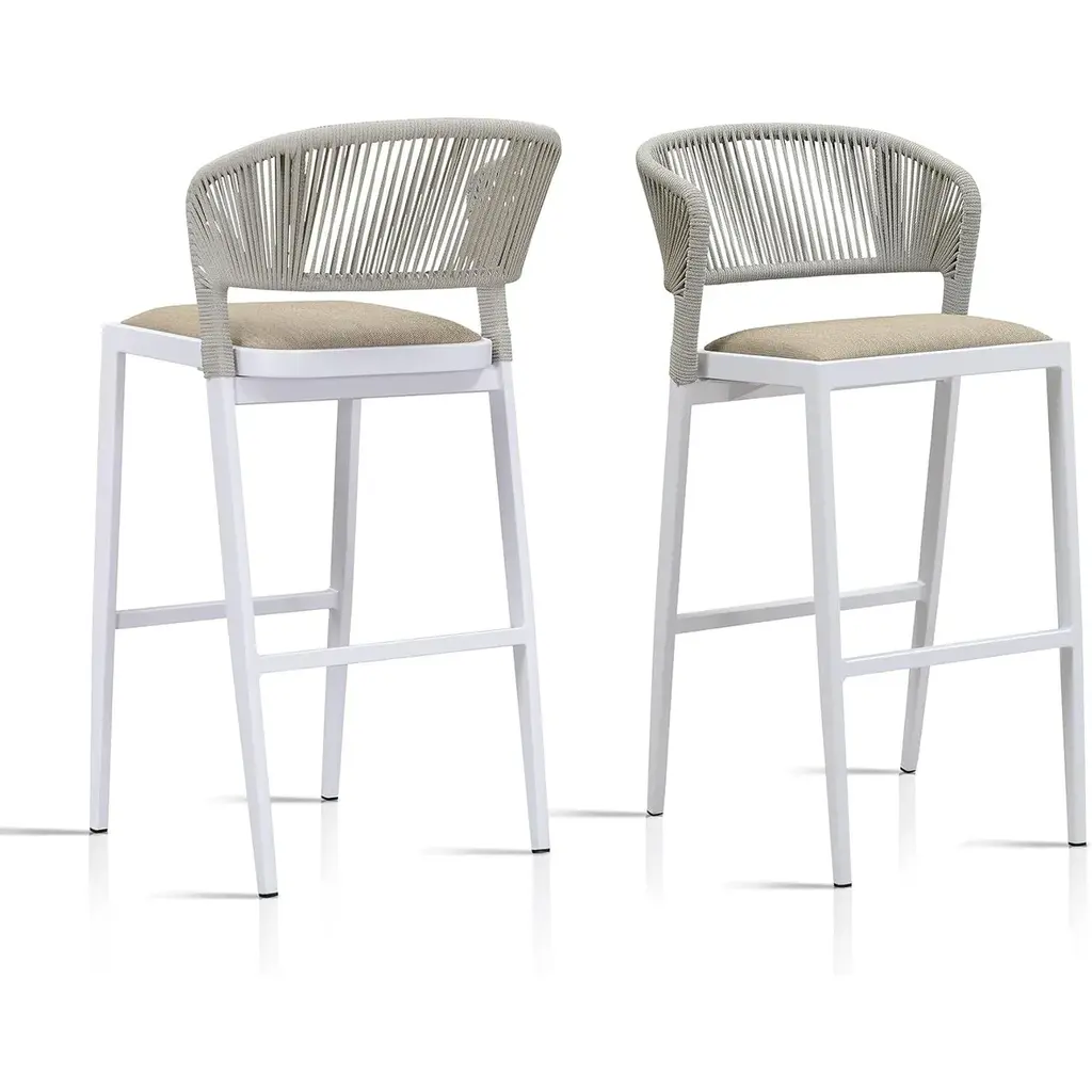 Enhance your space with this set of two bar stools, featuring an intricate woven pattern that blends modern style with traditional craftsmanship. Designed with ergonomic principles in mind, the ergonomic design and footrest provide excellent support, reducing fatigue even during extended sitting. Crafted from durable PE wicker, these bar stools resist moisture, fading, and pests, ensuring long-lasting beauty in both indoor and outdoor environments. Whether placed in a home bar, kitchen counter, or balcony, their versatile design makes them a stylish and functional addition to any setting.