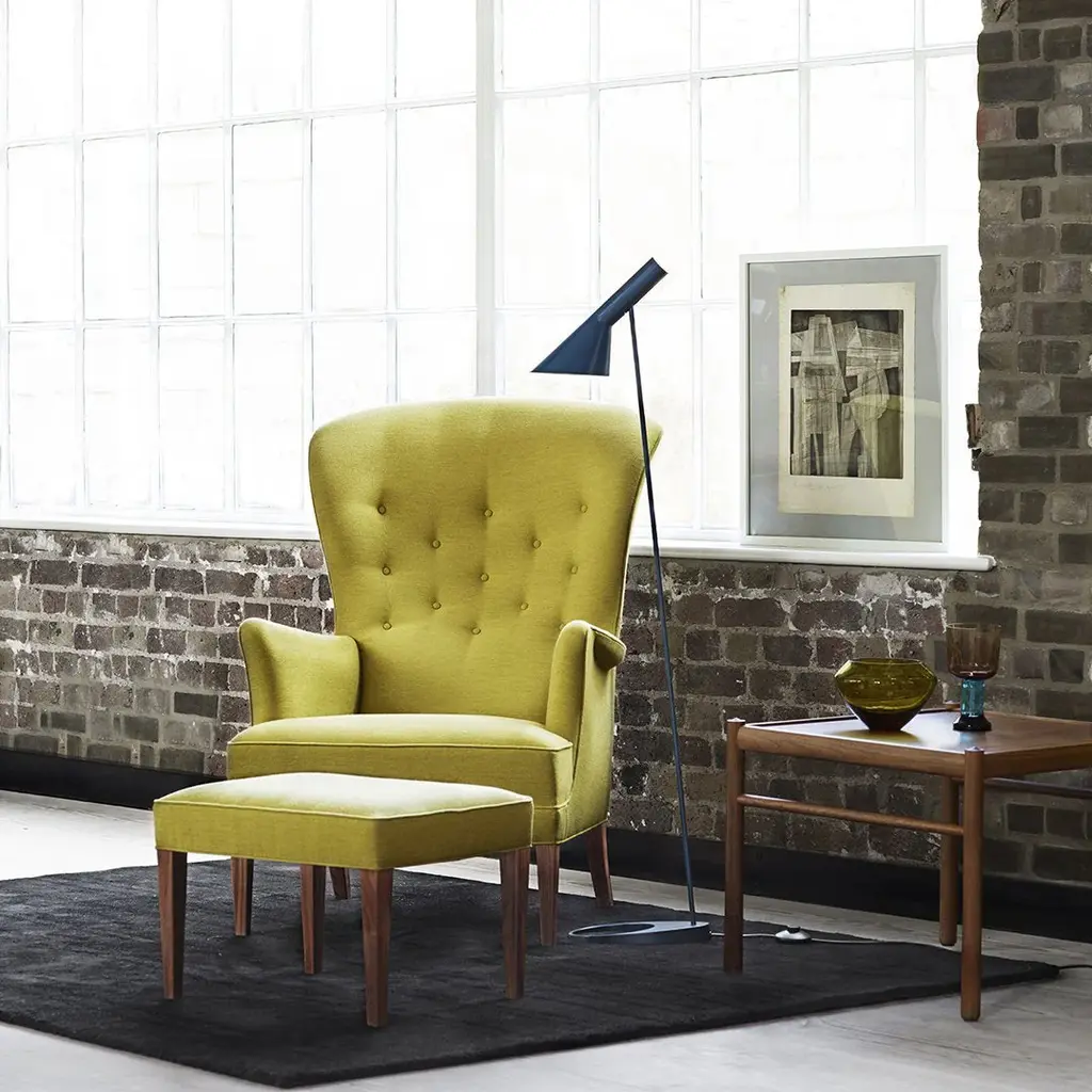 The FH420 Heritage Footrest matches the CH419 Heritage Chair by Frits Henningsen. With clear inspiration from earlier style epochs such as French imperial style and 17th-century British furniture, Frits Henningsen created a timeless classic so inviting that it easily becomes the favorite chair in any home. The Heritage Footrest is available in fabric or leather with legs in oak or walnut. A matching footrest, FH420, is available for extra comfort. All fabrics and leathers available upon request.Consult the Carl Hansen Wood & Fabric Guide for more info on materials (PDF). Call us for more information or to order by phone: 800.688.0974.