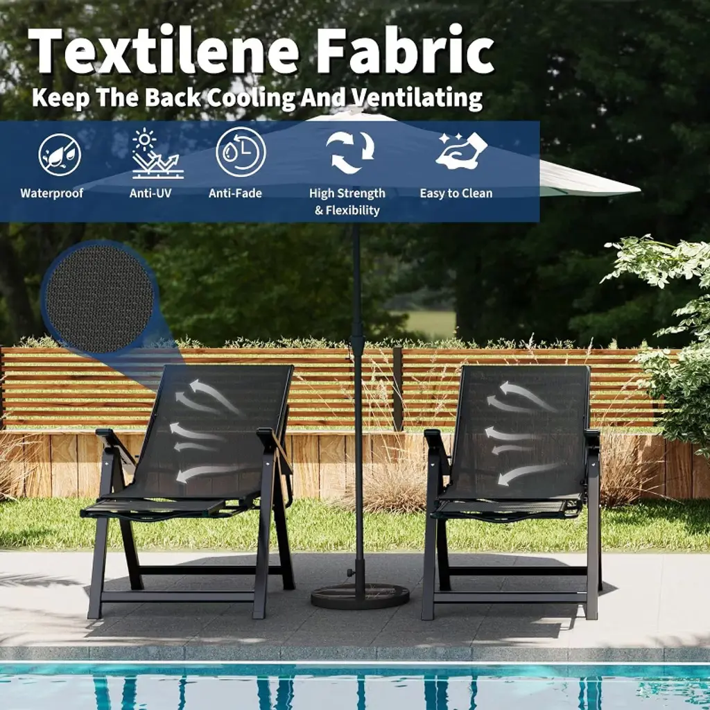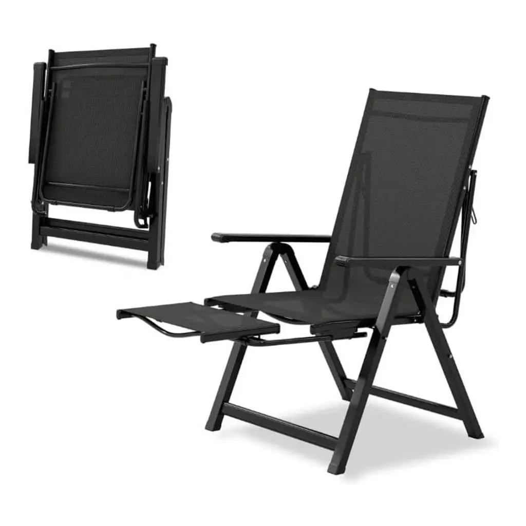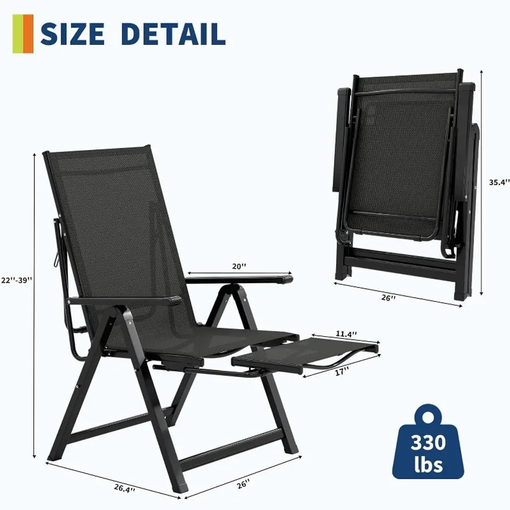 This outdoor chair features 10 adjustable backrest positions, allowing you to find the perfect angle—from fully upright to fully reclined. Simply lift the armrest and lock it into your preferred position for personalized comfort that supports your back throughout every moment of relaxation.Designed with ergonomic armrests and a high backrest, this lounge chair contours perfectly to your body for maximum relaxation. The durable metal frame supports up to 330 lbs, providing sturdy and reliable seating.