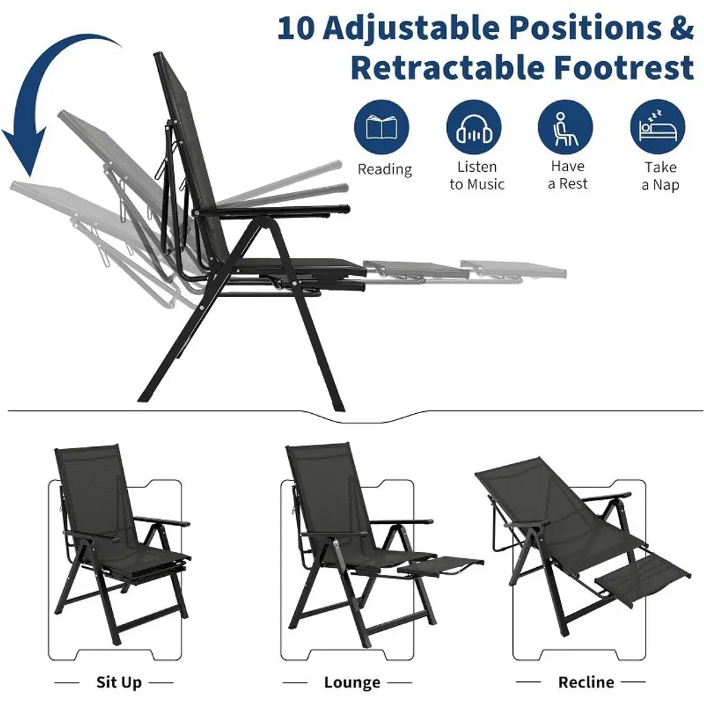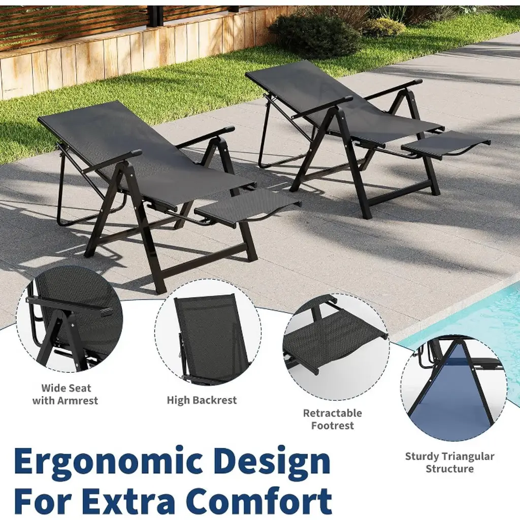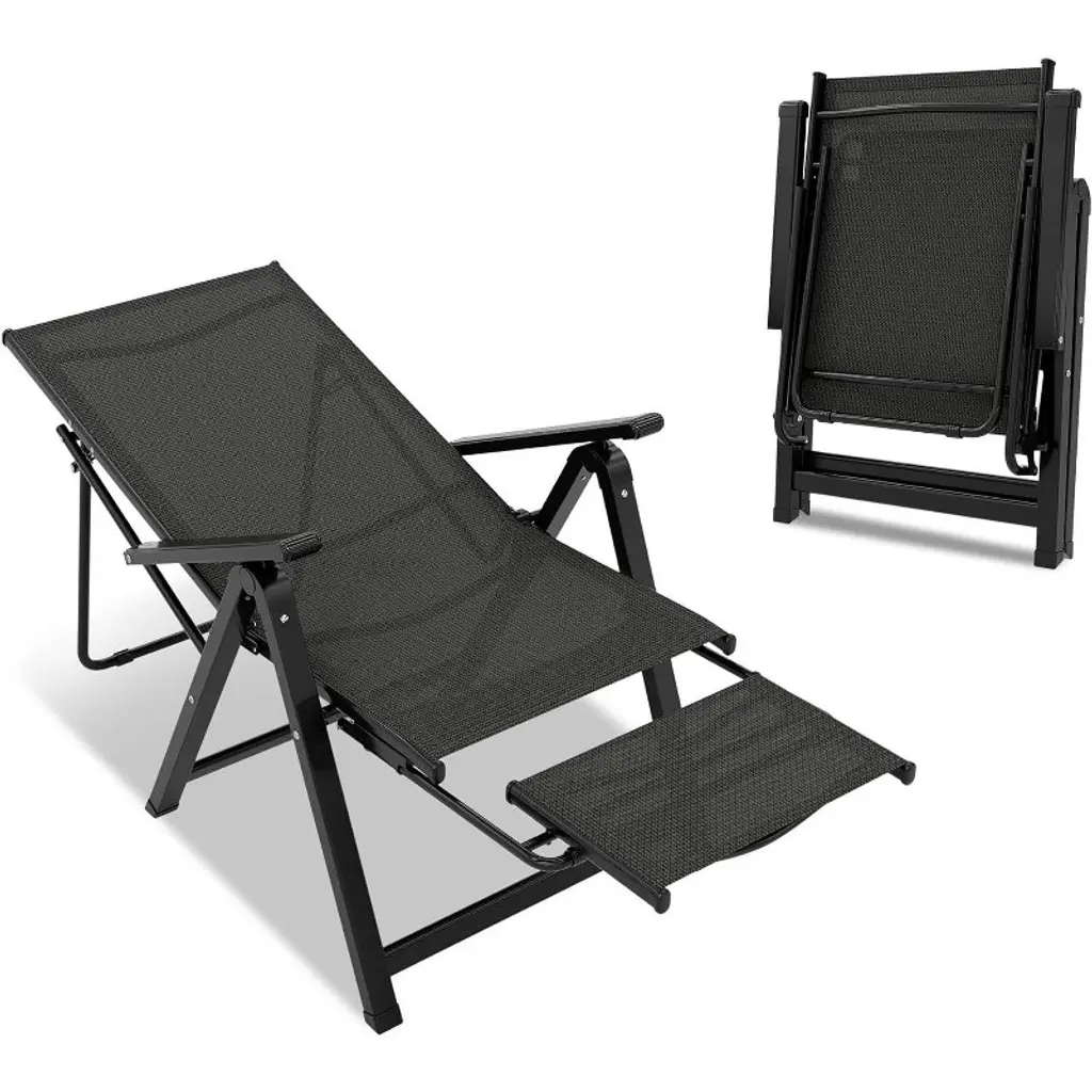 Folding Chaise Lounge Chair,chaise Lounge Chairs With10 Adjustable Positions&retractable Footrest,lightweight Recliner For Outdoor, Beach