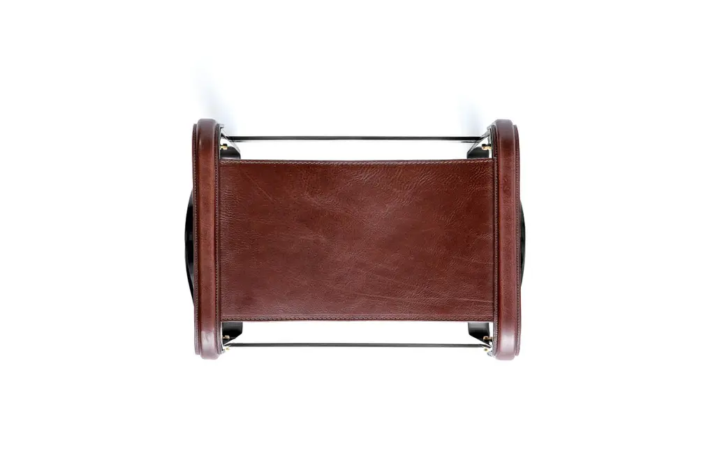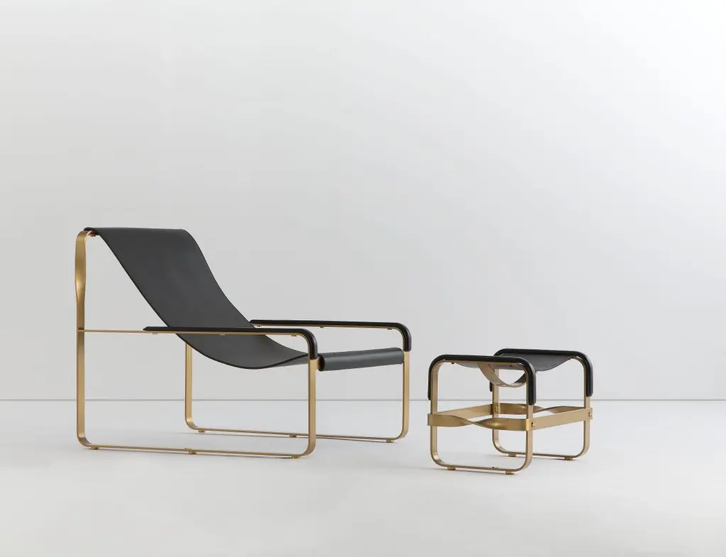 The Wanderlust contemporary ottoman and footstool belongs to a collection of minimalist and serene pieces where exclusivity and precision are shown in small details such as the hand-turned metal nuts and bolts that fix the leather surfaces, that go unnoticed at first sight.The robustness of the steel structure is combined with the delicacy of the rounded edges. The matte metal finishes evoke the passage of time and are complemented by vegetable tanned cowhide leathers that age gracefully with its use.The Wanderlust counter stool is designed and conceived as a tribute of Bauhaus tribute, the phrases "Less is more" and "God is in the detail" from the German American architect and industrial designer Mies van der Rohe, one of the pioneers of modernist architecture, define this collection.All pieces are done with cold bended steel rods, polished, nickel plated, colored by electrolysis, and lacquered. The process of polishing and lacquering the steel, goes through a manual and delicate chroming process, which gives its final and unique metal color finish. This precise technique gives a uniform metallic finish of minimum 50 microns over the entire Surface. Our metal finishing has successfully passed a corrosion resistance test in a salt spray chamber according to UNE-EN ISO 9227: 2017 and UNE-EN ISO 1456: 2010. Our signature screws are made with brass turning lathed, polished, and lacquered, these are the pieces that fix the saddle leather to the metal frame.Leathers are Spanish hides vegetable tanned. We use premium saddles in multiple colors to adjust to your taste and interior needs. This traditional vegetable dying and tanning method is an organic technique that relies on natural tannings from bark or plant tissues. The use of oils and natural fats give the leather a distinctive flexibility and texture, allowing it to be molded, retain its shape and age graciously.All skins are carefully selected from food industry sub-products, with a minimum thickness of 3.5 mm / 0,02 in, using the part of the animal's shoulder, which allows for larger pieces and uniformity, even though signature wrinkle from the animal’s neck may be recognizable. The vegetable tanning is a traditional and artisan treatment, which is respectful to the environment. Even with careful selection natural marks as a result of the contact with other animals, the age, origin and characteristics of the skin, or even the season in which the tanning takes place cannot be avoided. We still believe that these factors only add authenticity and uniqueness to every piece. Our leather parts are made with double saddles, always showing the top side of the hides that presents the better quality.Customization options.With the aim of creating customized pieces, clients can select from the various metal finishes, and leather colors to create pieces that complement their home décor. Leather colors available, black, navy, dark brown, cognac and natural tobacco, and steel polished finishing available, aged brass, black smoke and aged silver.Normally we use tone on tone threats for stitches, but client can select a contrast option, being possible to select any color to make a unique piece for the project it belongs. The finish on the edges of our leather components are sanded and hand painted. We have the option of select an alternative color if not tone on tone will be applied.Please consult in case you are interested on having a particular heat embossing stamp on the leather with your own branding.Our collections are made to full fill home spaces where to gather and enjoy great conversation with families and friends. Occasional furniture for exquisite homes, from cottages to exclusive resorts. Our product is understood as a sculptural piece of design, as an art object to be displayed at different house spaces as library, bar, living, foyer, bedroom, powder, meeting, grand or great room.The different finishes options make the furniture perfect combinations on diverse styles, from rustic mountain home, a small cottage, a ski lodge retreat, or industrial a minimalist look.