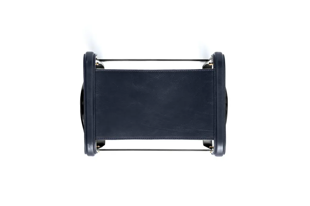 Footstool Black Smoke Steel & Navy Blue Leather, Contemporary Style