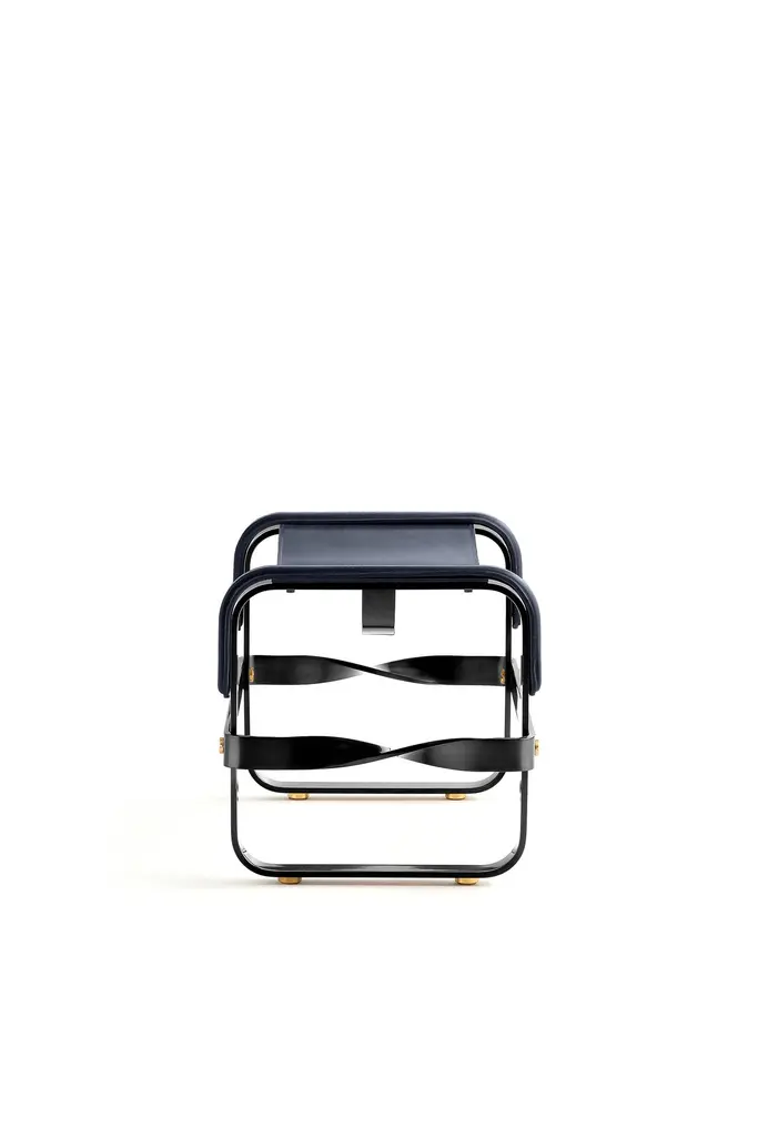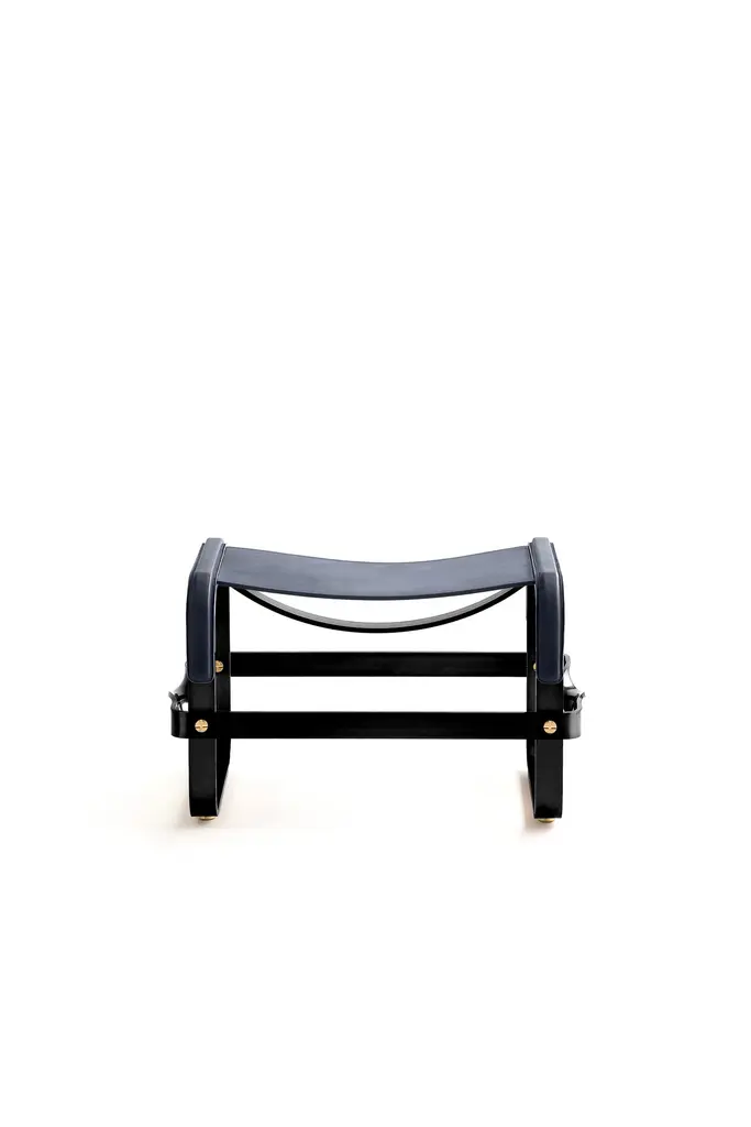 The Wanderlust contemporary ottoman and footstool belongs to a collection of minimalist and serene pieces where exclusivity and precision are shown in small details such as the hand-turned metal nuts and bolts that fix the leather surfaces, that go unnoticed at first sight.The robustness of the steel structure is combined with the delicacy of the rounded edges. The matte metal finishes evoke the passage of time and are complemented by vegetable tanned cowhide leathers that age gracefully with its use.The Wanderlust counter stool is designed and conceived as a tribute of Bauhaus tribute, the phrases "Less is more" and "God is in the detail" from the German American architect and industrial designer Mies van der Rohe, one of the pioneers of modernist architecture, define this collection.All pieces are done with cold bended steel rods, polished, nickel plated, colored by electrolysis, and lacquered. The process of polishing and lacquering the steel, goes through a manual and delicate chroming process, which gives its final and unique metal color finish. This precise technique gives a uniform metallic finish of minimum 50 microns over the entire Surface. Our metal finishing has successfully passed a corrosion resistance test in a salt spray chamber according to UNE-EN ISO 9227: 2017 and UNE-EN ISO 1456: 2010. Our signature screws are made with brass turning lathed, polished, and lacquered, these are the pieces that fix the saddle leather to the metal frame.Leathers are Spanish hides vegetable tanned. We use premium saddles in multiple colors to adjust to your taste and interior needs. This traditional vegetable dying and tanning method is an organic technique that relies on natural tannings from bark or plant tissues. The use of oils and natural fats give the leather a distinctive flexibility and texture, allowing it to be molded, retain its shape and age graciously.All skins are carefully selected from food industry sub-products, with a minimum thickness of 3.5 mm / 0,02 in, using the part of the animal's shoulder, which allows for larger pieces and uniformity, even though signature wrinkle from the animal’s neck may be recognizable. The vegetable tanning is a traditional and artisan treatment, which is respectful to the environment. Even with careful selection natural marks as a result of the contact with other animals, the age, origin and characteristics of the skin, or even the season in which the tanning takes place cannot be avoided. We still believe that these factors only add authenticity and uniqueness to every piece. Our leather parts are made with double saddles, always showing the top side of the hides that presents the better quality.Customization options.With the aim of creating customized pieces, clients can select from the various metal finishes, and leather colors to create pieces that complement their home décor. Leather colors available, black, navy, dark brown, cognac and natural tobacco, and steel polished finishing available, aged brass, black smoke and aged silver.Normally we use tone on tone threats for stitches, but client can select a contrast option, being possible to select any color to make a unique piece for the project it belongs. The finish on the edges of our leather components are sanded and hand painted. We have the option of select an alternative color if not tone on tone will be applied.Please consult in case you are interested on having a particular heat embossing stamp on the leather with your own branding.Our collections are made to full fill home spaces where to gather and enjoy great conversation with families and friends. Occasional furniture for exquisite homes, from cottages to exclusive resorts. Our product is understood as a sculptural piece of design, as an art object to be displayed at different house spaces as library, bar, living, foyer, bedroom, powder, meeting, grand or great room.The different finishes options make the furniture perfect combinations on diverse styles, from rustic mountain home, a small cottage, a ski lodge retreat, or industrial a minimalist look.