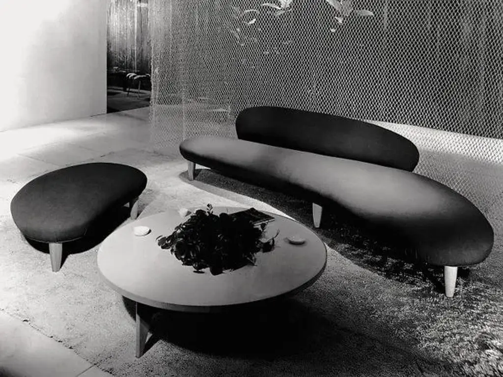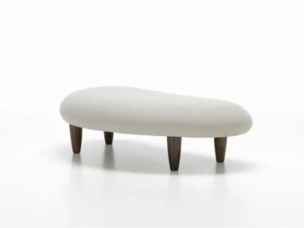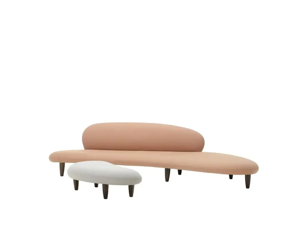 The sculptural quality of Noguchi‘s design vocabulary finds expression in the Freeform Sofa: it is entirely different from other designs of the same period, appearing in combination with the Ottoman like an enlarged sculpture of flat, rounded river stones. The slender organic forms are fluid and graceful. Noguchi emphasises the lightness of the elements with thin yet comfortable upholstery and a choice of cover fabrics in natural colours.The Freeform Sofa and companion Ottoman were produced around 1950 in limited numbers. Today, the few remaining pieces achieve record prices at auction. Since 2002, the group has been produced by the Vitra Design Museum as a fully authentic re-edition. The sofa is suitable not only for use in living spaces, but also in lobbies, hotels and retail shops.Materials:- Frame: solid beech.- Body and cushions: classic upholstery.- Covers: removable Credo fabric.- Legs: solid maple, natural finish or walnut stain.