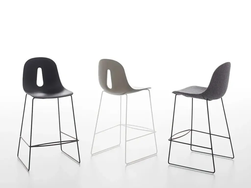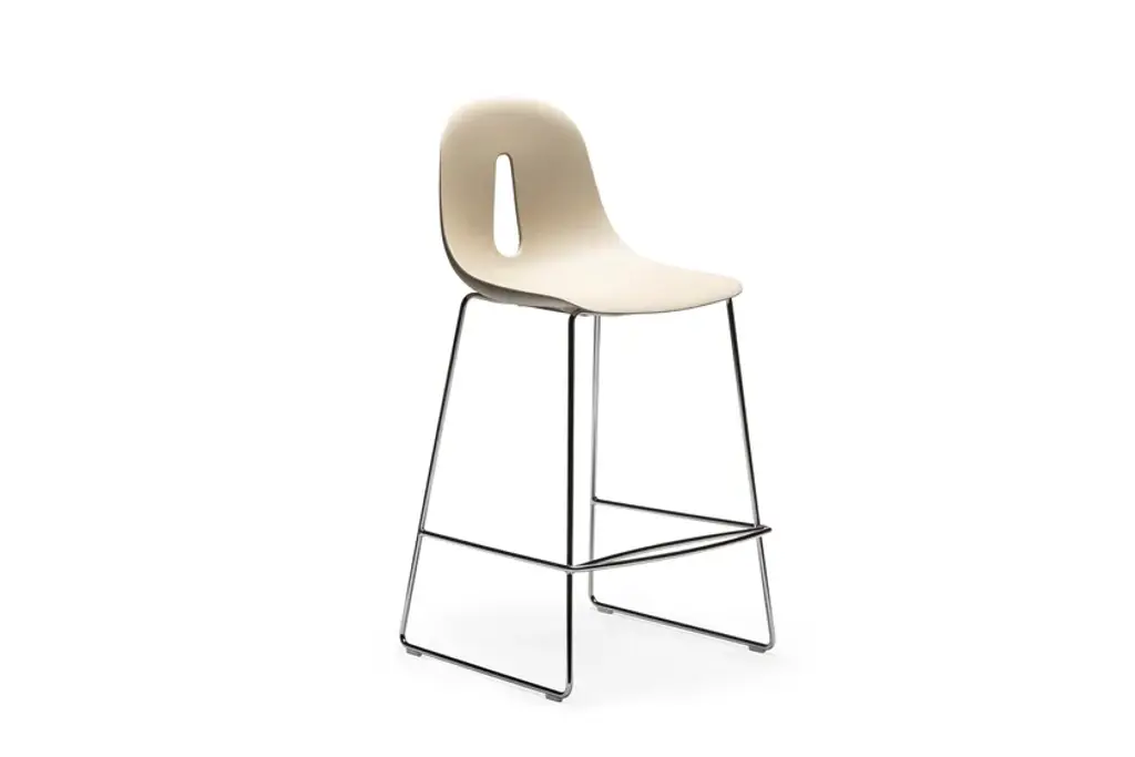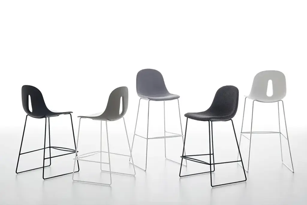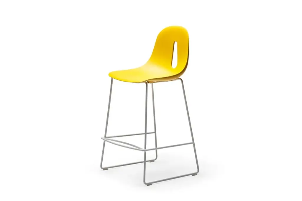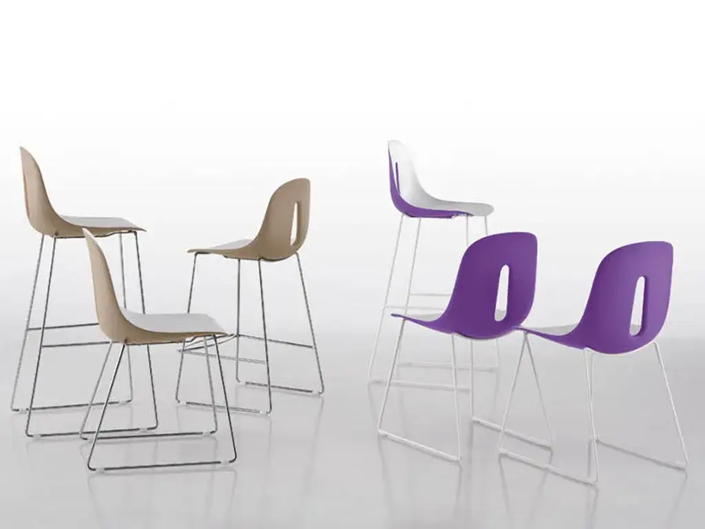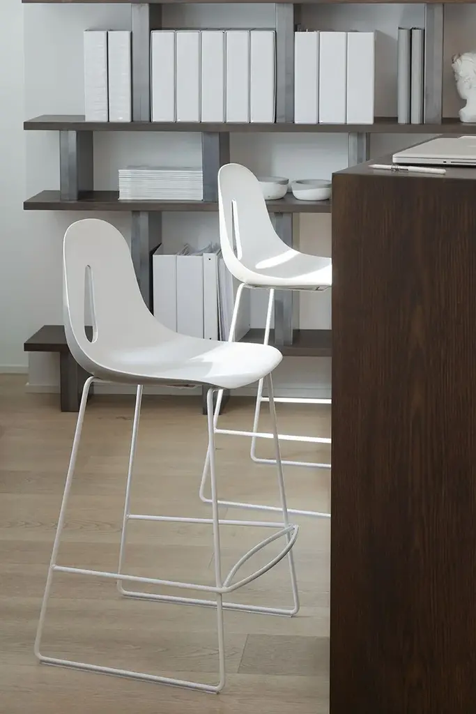 Gotham SL SG 65Gotham SL is part of a very wide collection of chairs and stools. Gotham shell is characterized by the very deep “neckline” of the back, this is the element around which make up the rich family of Gotham. The seat is in bi-or mono color rigid polyurethane ( fire retardant) . The range is expanded by the padded version available in many different modern colors. All these versions are very comfortable. The collection Gotham SL is characterized by the slide base in white, black or chrome steel.Gotham It may look like a raindrop, a slender linear cut, an open - ing for gripping and for anchoring or even a window from which you can look through. Gotham was born like this, with this distinct and recognizable graphic detail which, in different versions, takes on different meanings and functions, strengthening its identity without ever appearing excessive. A seat that gradually, over time, has evolved into new versions enriched with finishes, colours and details. Created in 2010 from an idea of Dario Delpin, it has proven to be able to stand strong against passing fashions by being always modern without ever betraying its distinctive features: the delicate curve of its silhouette, its graceful graphic detail and the feeling of snugness and coziness of the seat itself. Simple concepts, but never conventional, which make this piece of furniture completely original notwithstanding its extreme linearity, and make it suitable for any setting and for every purpose