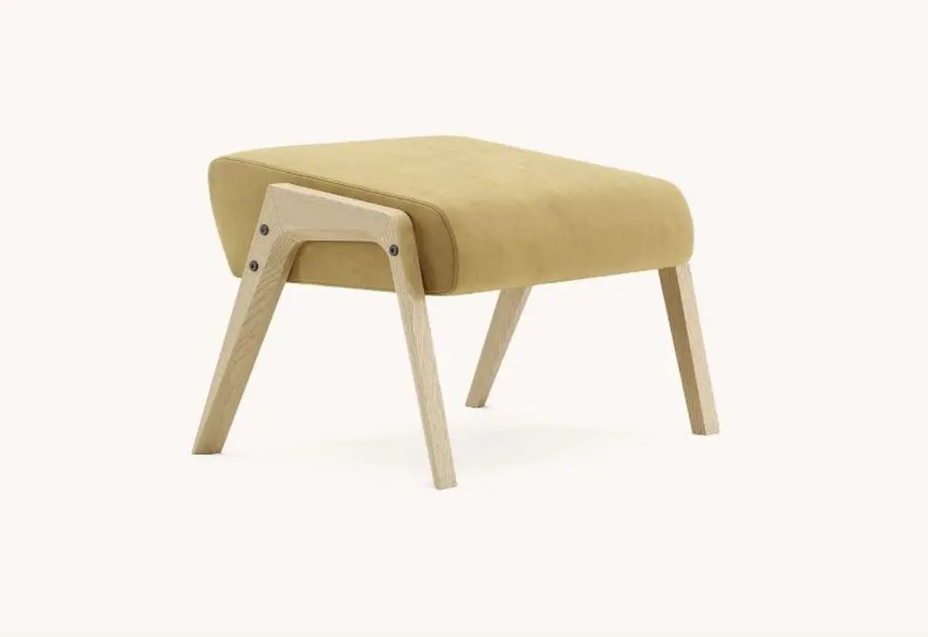 Greta footrest by DomkapaMaterials: Velvet, Natural Ash. Dimensions: W 47 x D 62 x H 42 cm. Also available in different materials. Greta armchair is proof that aesthetics and ergonomics when combined, result beautifully. Available in two versions, with a lower and higher back, Greta measured proportions perfectly balance thickness and straight lines. The four-leg structure is presented in wood while the seat, back, and armrest are fully upholstered. Across the piece, many stitching is found to increase its durability and charm. Infinite customization options are available to make sure Greta armchair is the perfect solution for your design project.Domkapa holds a tremendous passion for detailed stitching, presenting several similarities to the haute-couture philosophy focused on the value of a “made by hand”. Based in Portugal, Domkapa was founded in 2009 as a Private Label. The long and fruitful path, full of experience and achievements inspired the brand’s new identity and independence, in 2017.Domkapa challenges its team to create the perfect daily meeting between design and comfort in each piece of the brand’s collections. Our design team works side by side with the production, and this organic synergy allows the creation of innovative designs.