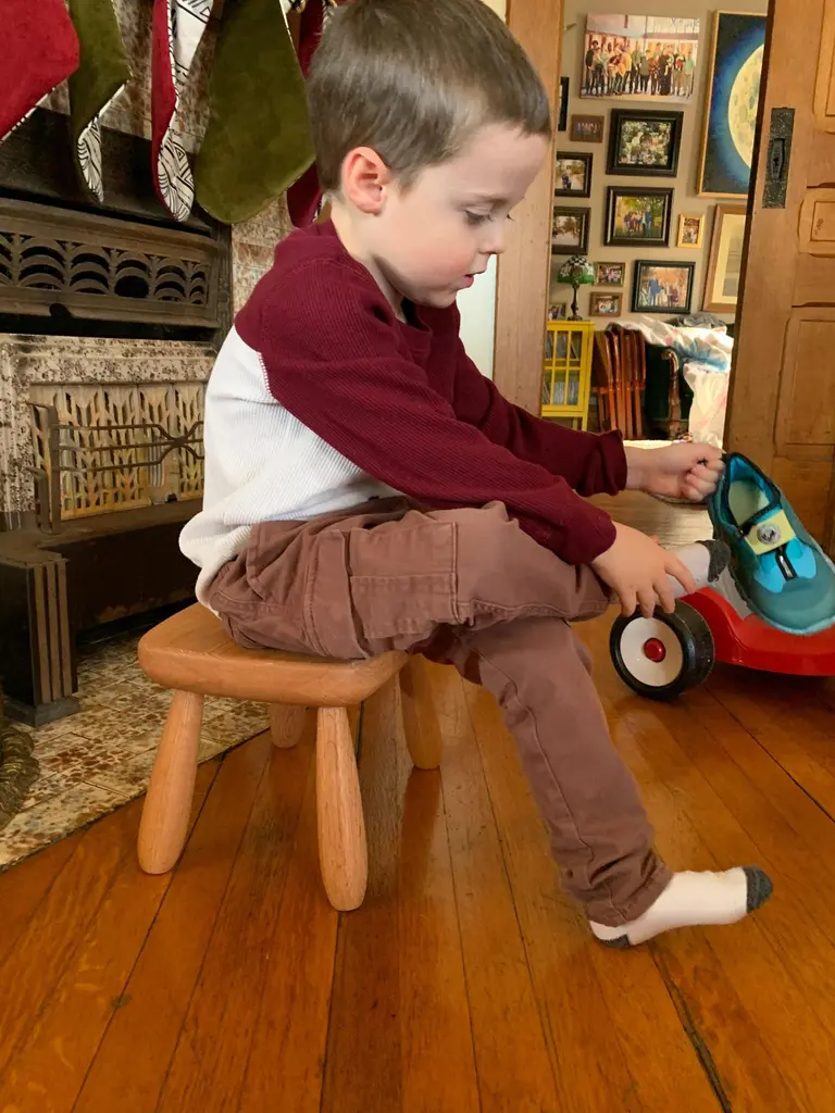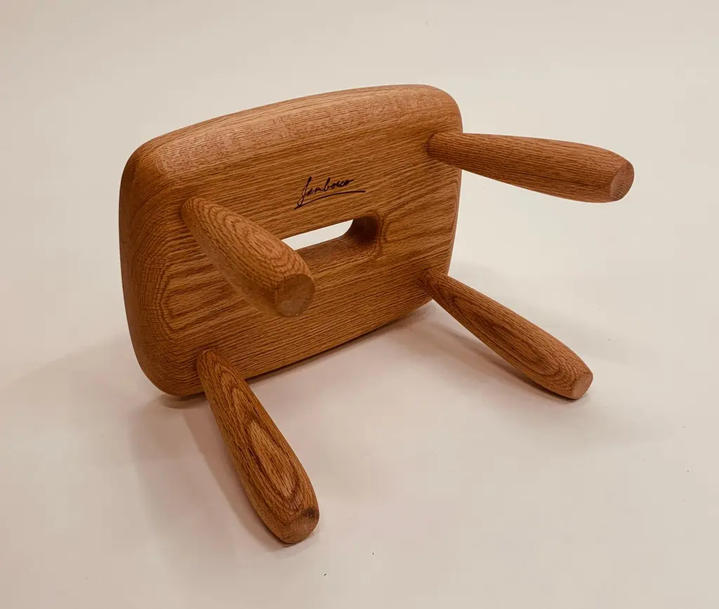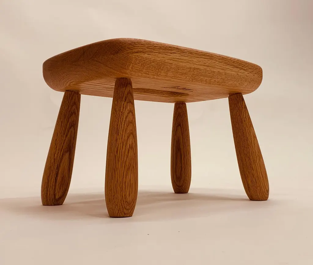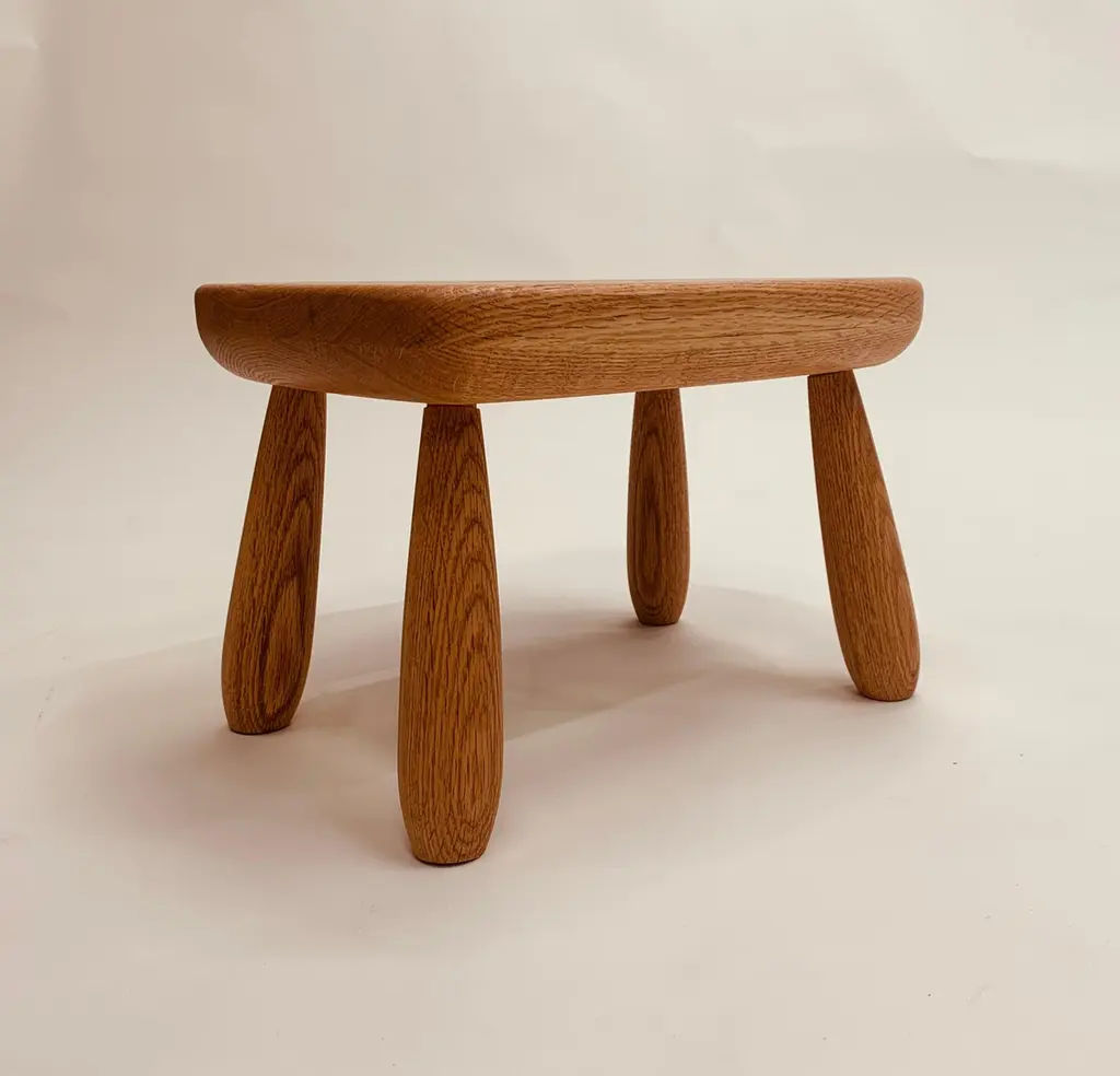 Use a foot-stool in the kitchen to reach that top shelf, by the fireplace to peek inside the Christmas stocking, or at the back door to sit on when you change your shoes. The Poodle foot-stool is made in Indiana of red oak, an American hardwood that really is a hard wood, and whose strong grain pattern will conceal scuff marks. The legs have a reverse taper that makes each of them an easy handle when you need to move it. Or, you can pick it up using the slot in the middle of the seat. Supplies are limited.9"H x 13"L x 9.5"W14-day full refund policy - buyer pays for return shippingThe story behind the Poodle:My oldest brother Jake, dearly beloved and now deceased, was a woodworker par excellence. For Christmas or other special occasions, he would sometimes take a break from fancier projects and make a gift of a foot-stool; over the years he came up with many delightful designs. This year I thought it would be fun to carry on the tradition as a present for the wedding of my nephew Levi and his bride Heather. The puffy legs and chunky body just made it seem friendlier. After I had made it I realized it reminded me of a poodle dog.