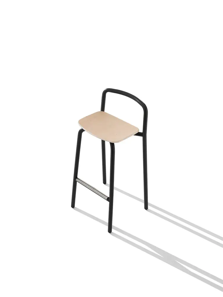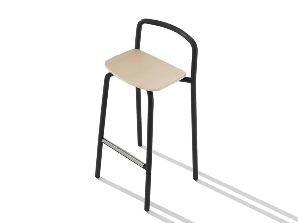 Barstool with armrests and steel frame, 4 legs. Beech wood seat and back (embossed finish)