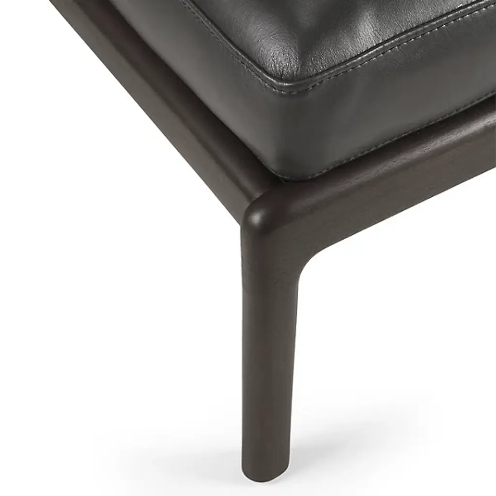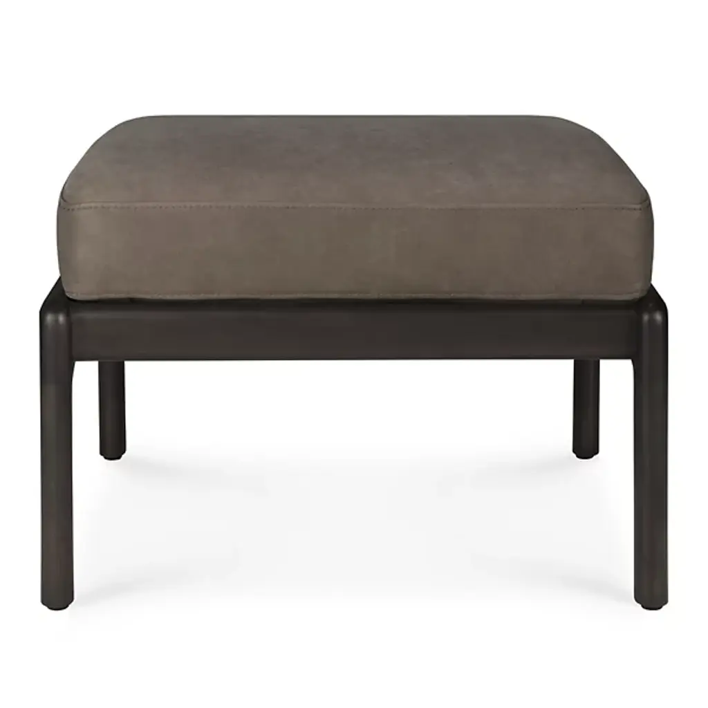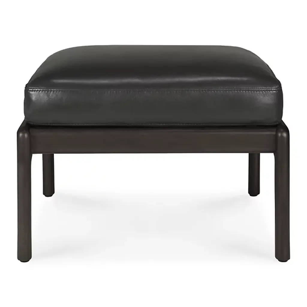 Add a soothing modern character to interior spaces with the elegant and inspired lines of the Jack Footstool from Ethnicraft. Designed by Jacques Deneef, it starts with the clean lines of modern design, flavored with a touch of Scandi modernism. The simple four-legged frame in smooth wood provides a subtle vintage character, its inset accents softened by a plush seat of leather-upholstered padding, giving a comfortable accompaniment to its surroundings.