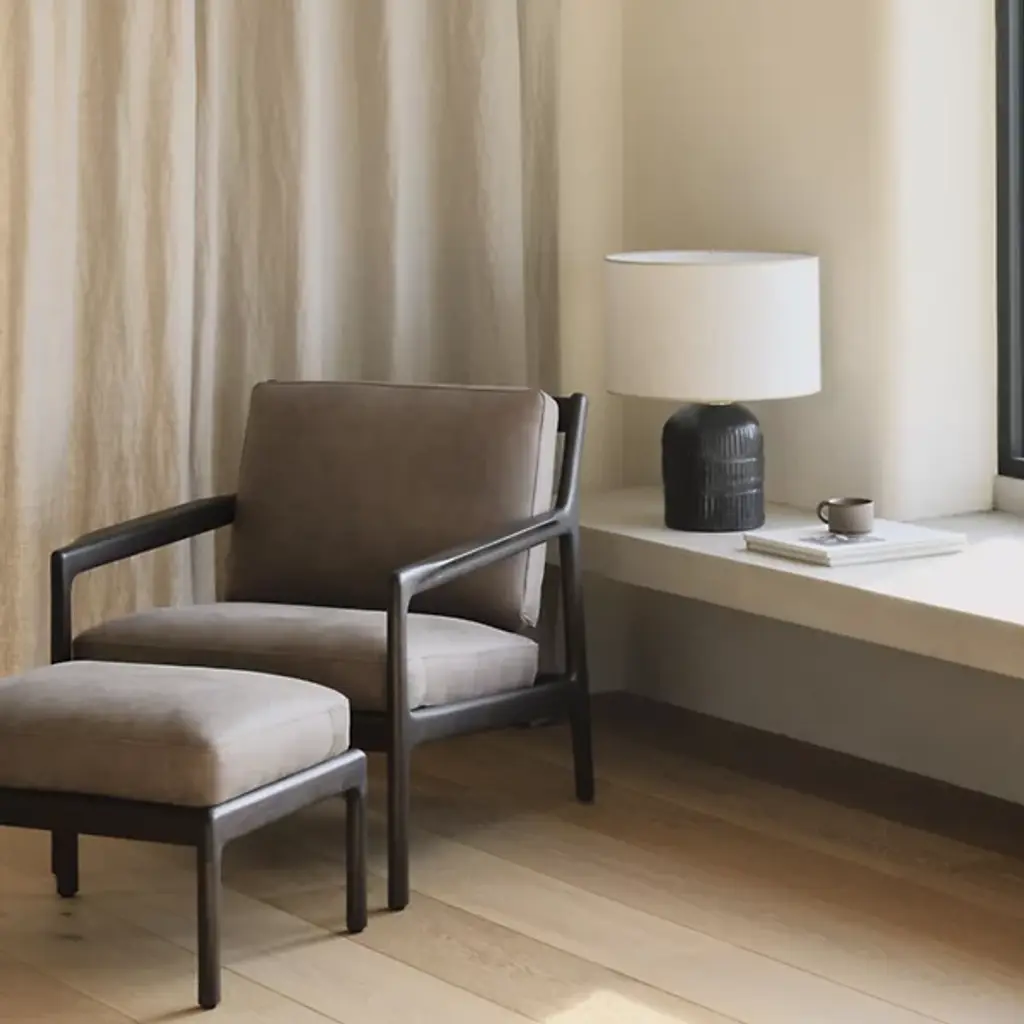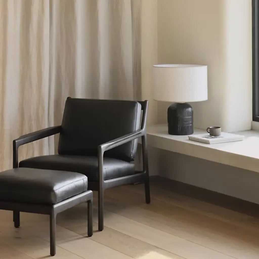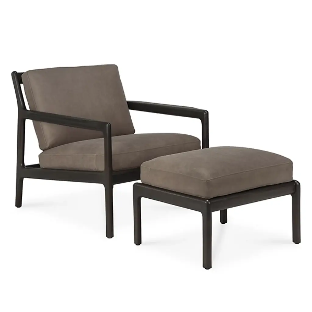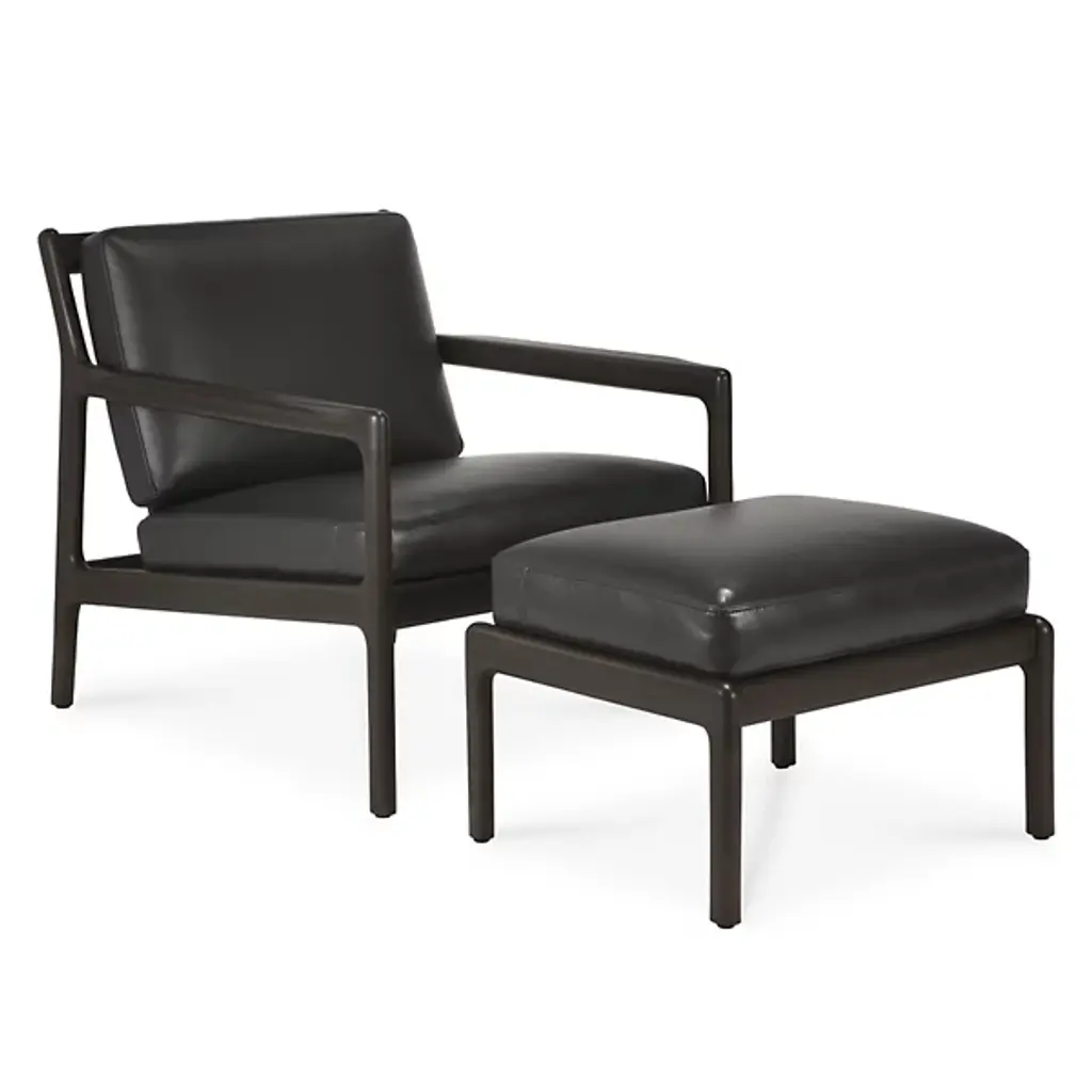 Add a soothing modern character to interior spaces with the elegant and inspired lines of the Jack Footstool from Ethnicraft. Designed by Jacques Deneef, it starts with the clean lines of modern design, flavored with a touch of Scandi modernism. The simple four-legged frame in smooth wood provides a subtle vintage character, its inset accents softened by a plush seat of leather-upholstered padding, giving a comfortable accompaniment to its surroundings.