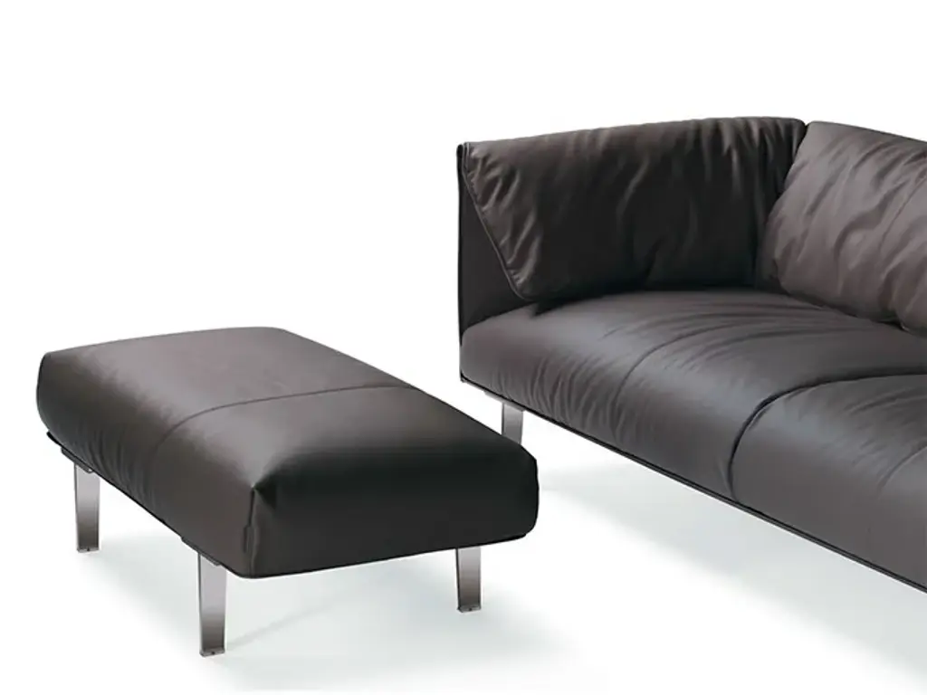 Die Struktur des Sofas John-John ist aus Massivesche, mit zentralem Querträger aus Eisen. Rückenlehne und Armlehnen mit Polsterung aus Polyurethanschaum und Polyesterwatte sind aus Massivesche und –pappel mit Paneelen aus Multischicht-Pappel und -Birkenholz. Die Kissen weisen eine Polsterung aus weichen Gänsedaunen auf und sind auf der Rückseite mit mikrogelochtem Pelle Frau®-Leder bezogen. Sie passen sich an die Körperbewegungen an und unterstreichen das Gefühl einer warmen und angenehmen Sitzfläche. Die Sitzfederung erfolgt durch elastische Gurte. Füße aus Aluminium mit Ruthenium-Finish und Schutzkappen aus transparentem Kunststoffmaterial.A collection of sofas that stand out for their enveloping, self-assured elegance. The structure of the seat is made from solid beech. The backrest and armrests, with padding in polyurethane foam and polyester wadding, are in solid beech and poplar with panels in birch and poplar plywood. The cushions, padded with soft goose down and with micro-perforated Pelle Frau® leather on the reverse, adapt to the movements of the body and really give you the feeling that the seat is smothering you in a warm hug. The seat’s spring system is created with elastic belts. Aluminium feet with ruthenium finish and protective transparent plastic caps.