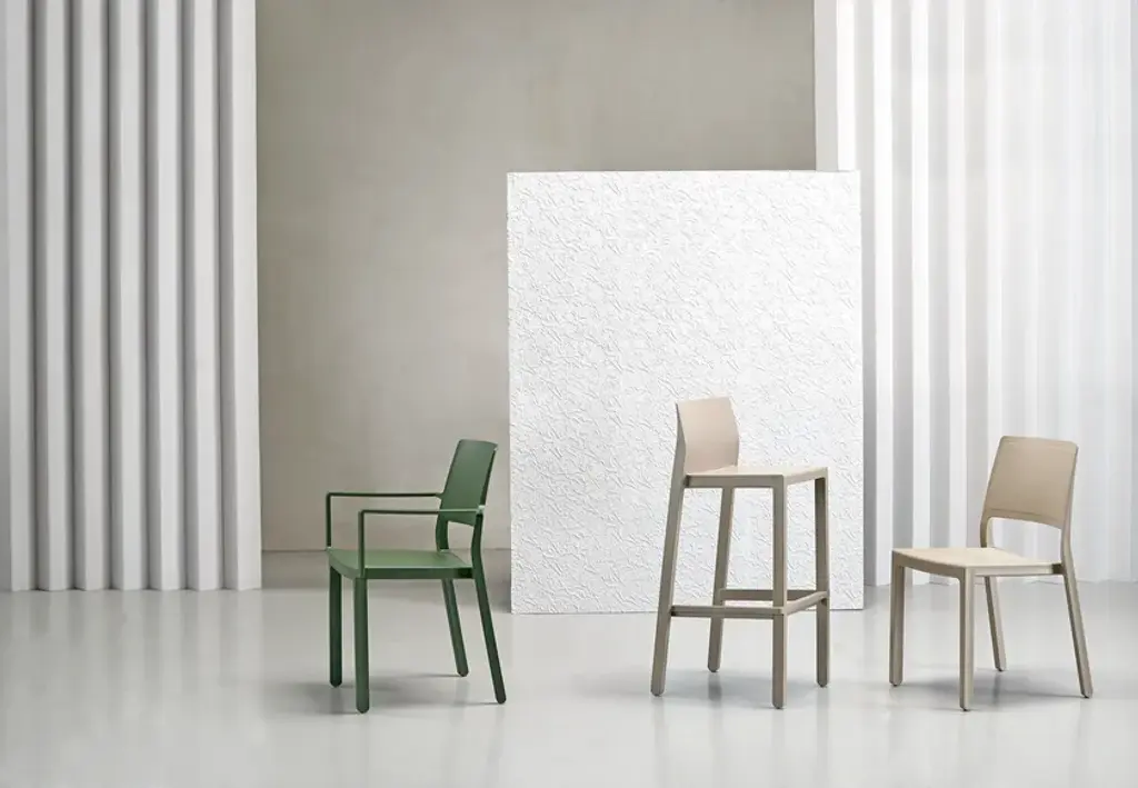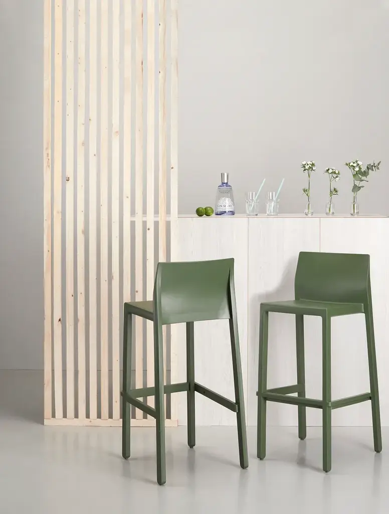 With a sober personality, the Kate barstool is minimalistic in its perimeter lines. The stackability and lightness make it easy to use in the most varied indoor and outdoor contract environments. Available in two heights, it completes the Kate collection.