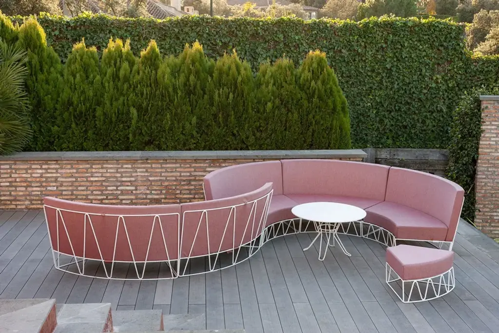 Lagarto is a pouf/footstool made of galvanized wire, polyester powder coated. Suitable for outdoor, indoor, and contract use.