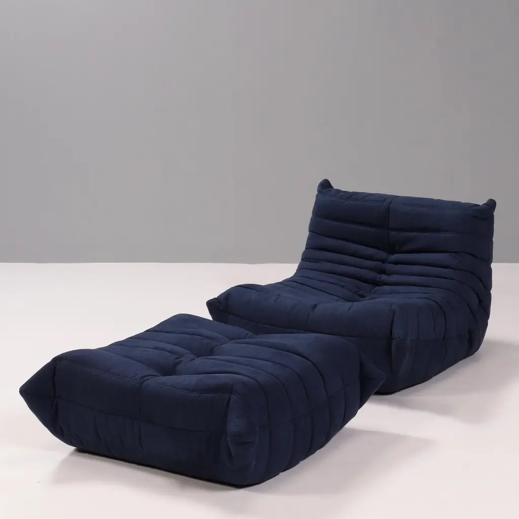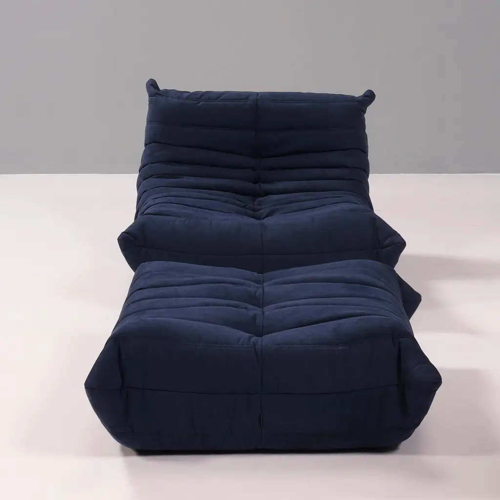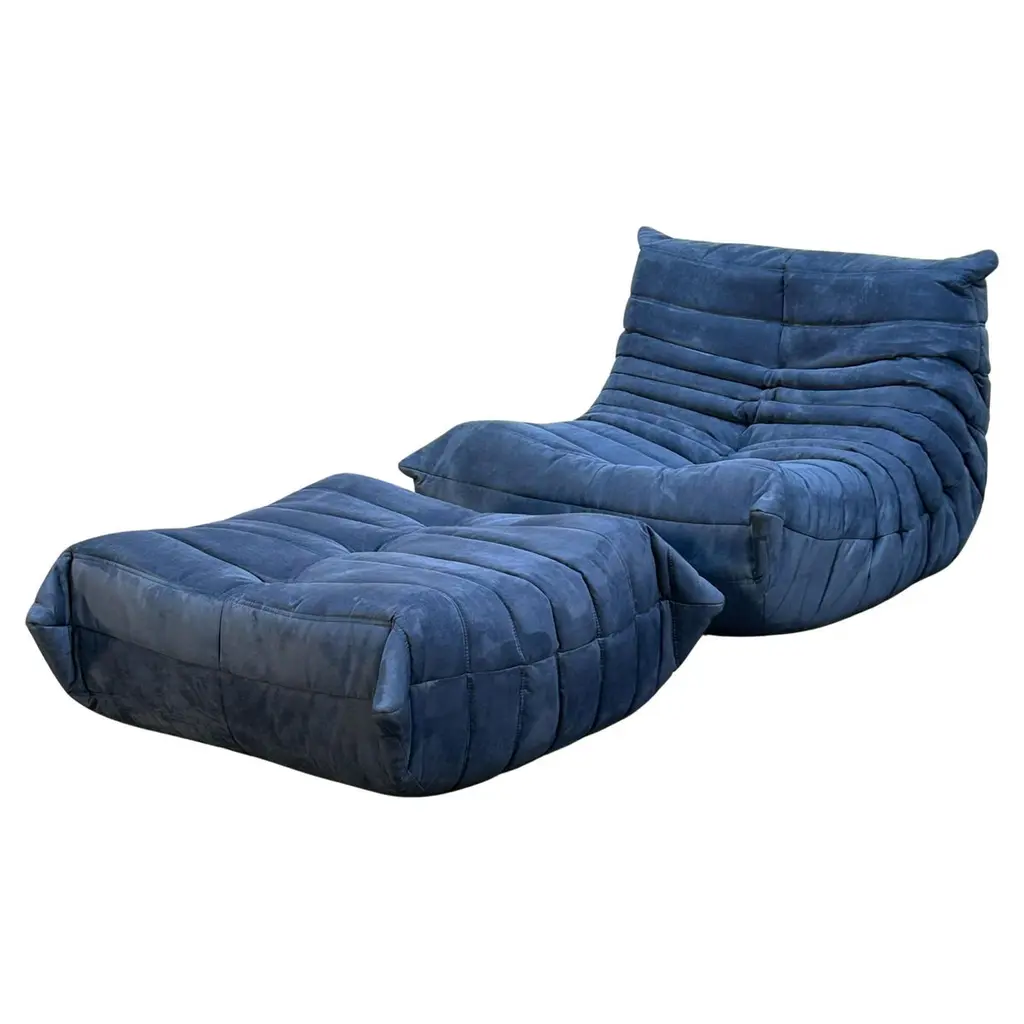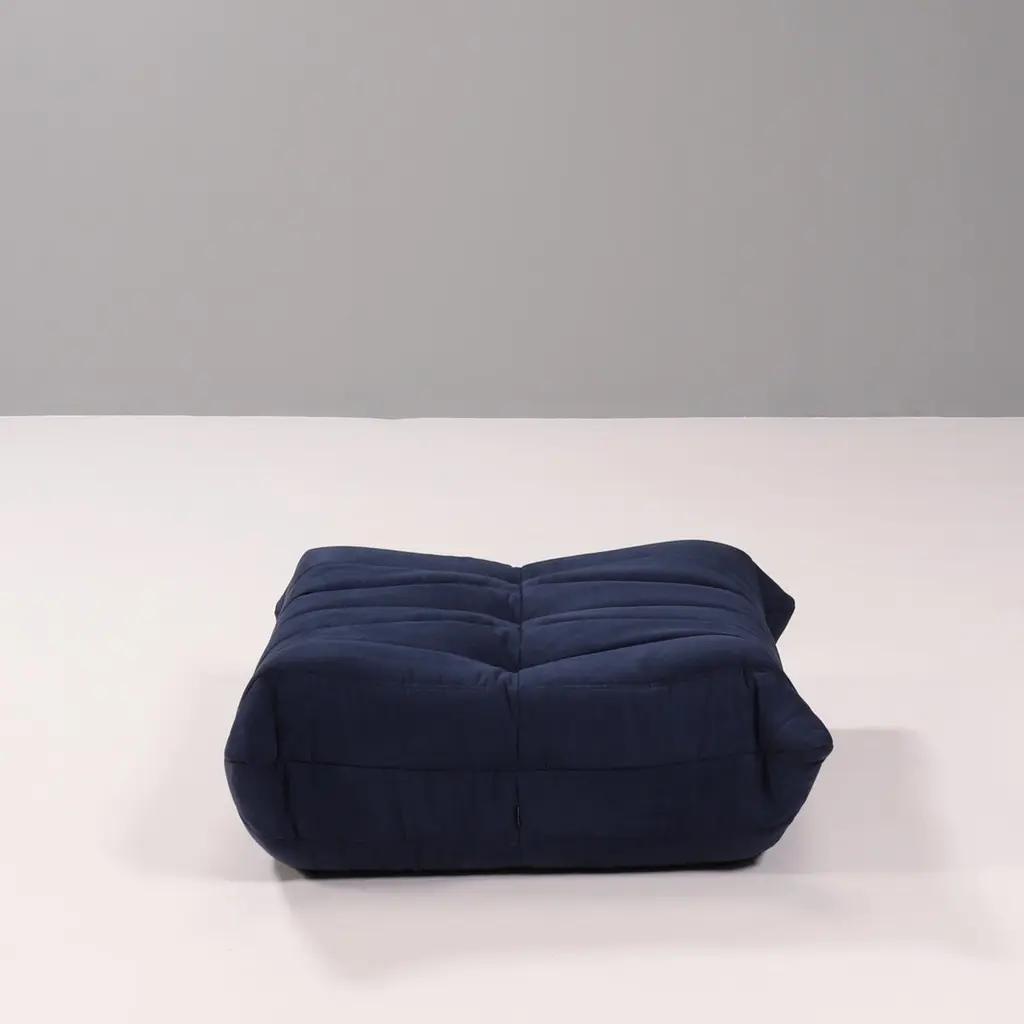 Ligne Roset By Michel Ducaroy Togo Dark Blue Armchair And Footstool, Set Of Two