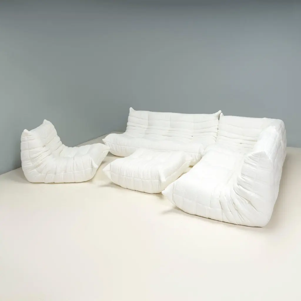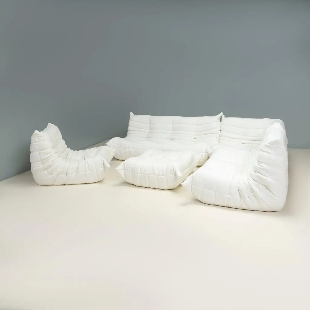 Ligne Roset By Michel Ducaroy White Bouclé Togo Sofa And Footstool, Set Of Five