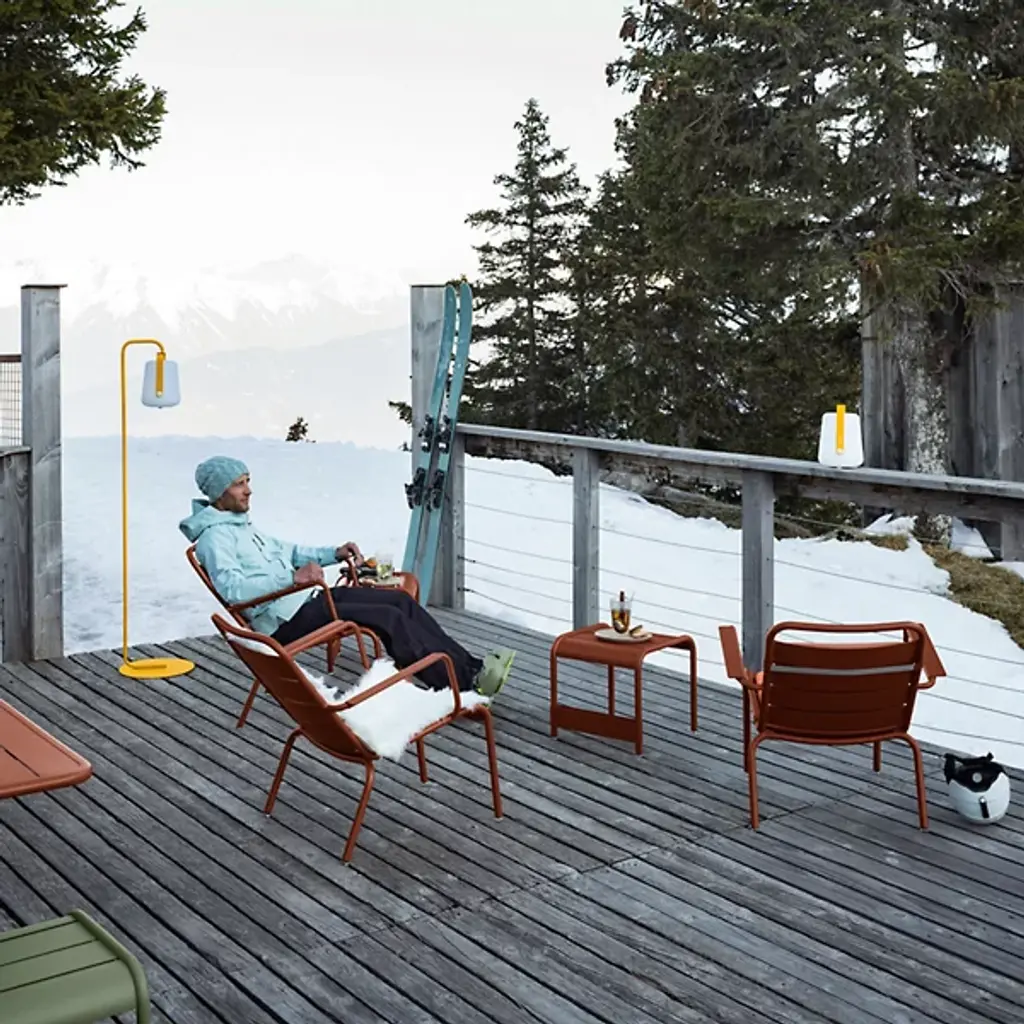 Prioritize your rest and relaxation efforts with the Luxembourg Outdoor Small Low Table/Footrest by Fermob. A refreshing blend of style and functionality, this outdoor footrest adds a new dimension to any porch, patio or veranda space. Made with a strong aluminum tubular frame and anti-UV powder coating, this low table stands up to sun, wind and rain, allowing for year-round use. Pair this footrest with your favorite outdoor chair or lounger to enjoy more of your time outside.