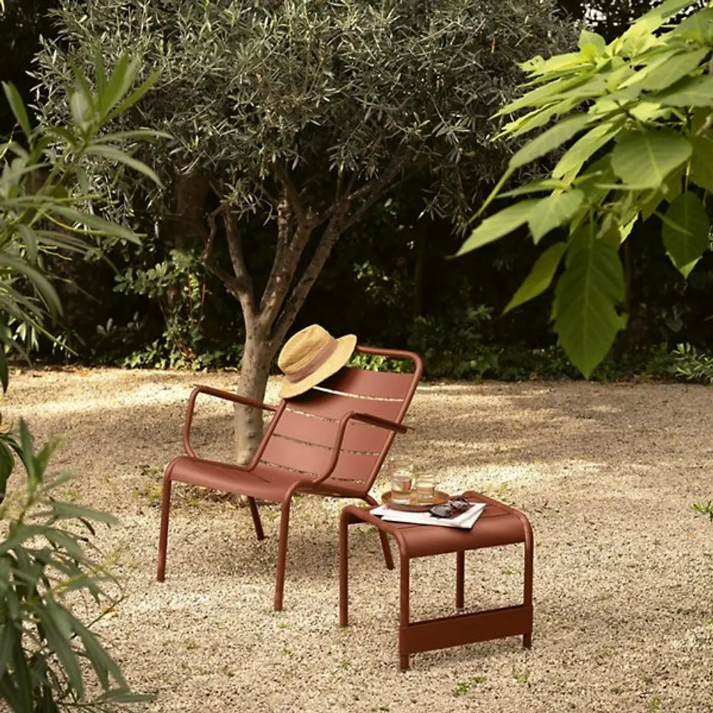 Prioritize your rest and relaxation efforts with the Luxembourg Outdoor Small Low Table/Footrest by Fermob. A refreshing blend of style and functionality, this outdoor footrest adds a new dimension to any porch, patio or veranda space. Made with a strong aluminum tubular frame and anti-UV powder coating, this low table stands up to sun, wind and rain, allowing for year-round use. Pair this footrest with your favorite outdoor chair or lounger to enjoy more of your time outside.
