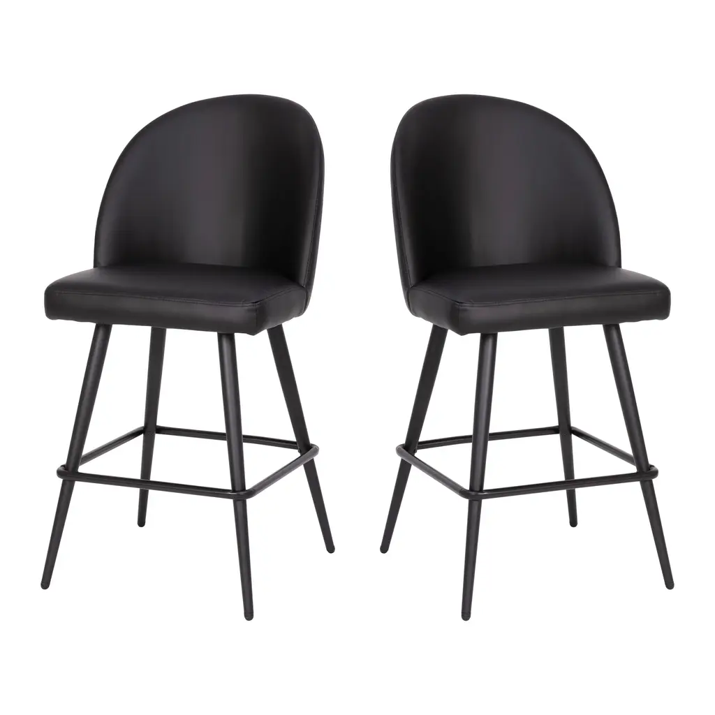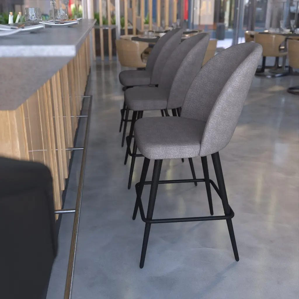 Add trending style and elegance to your home or business with this set of 2 commercial grade stools available in bar and counter heights. Boasting soft and durable upholstery, these counter stools will be a hit in any environment. The contoured back and high density foam padding ensure your guests will want to linger over drinks in the hotel bar or dinner at their favorite spot. Strength and durability are key in the hospitality industry as well as the home and this pair of counter stools features both. Powder coated steel frames and integrated footrests allow these upholstered stools to hold up to 300 lbs. static weight. Adjustable floor protector glides keep your hard flooring surfaces free from damage and assembly is quick and easy with the included tools and instructions. Wipe with a dry cloth to keep your new counter height chairs looking brand new.