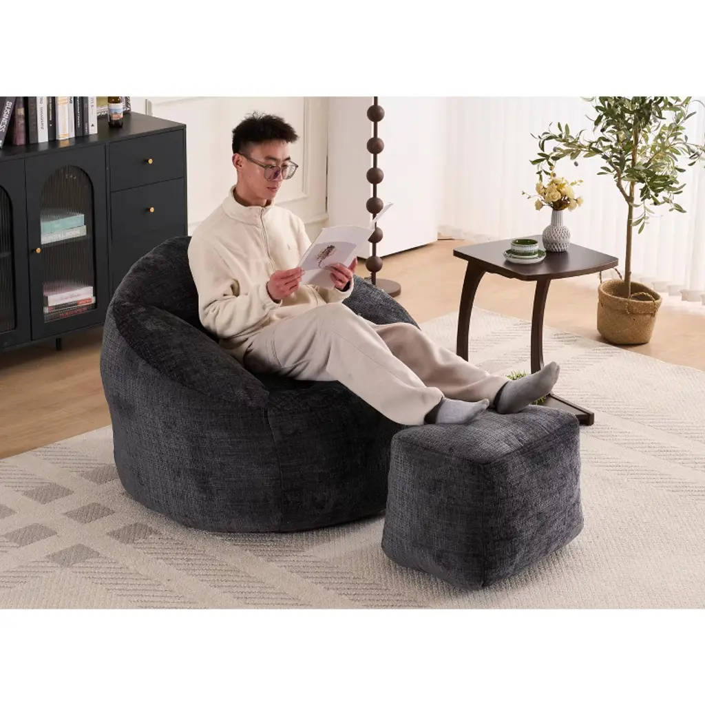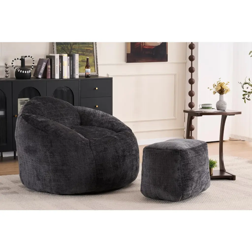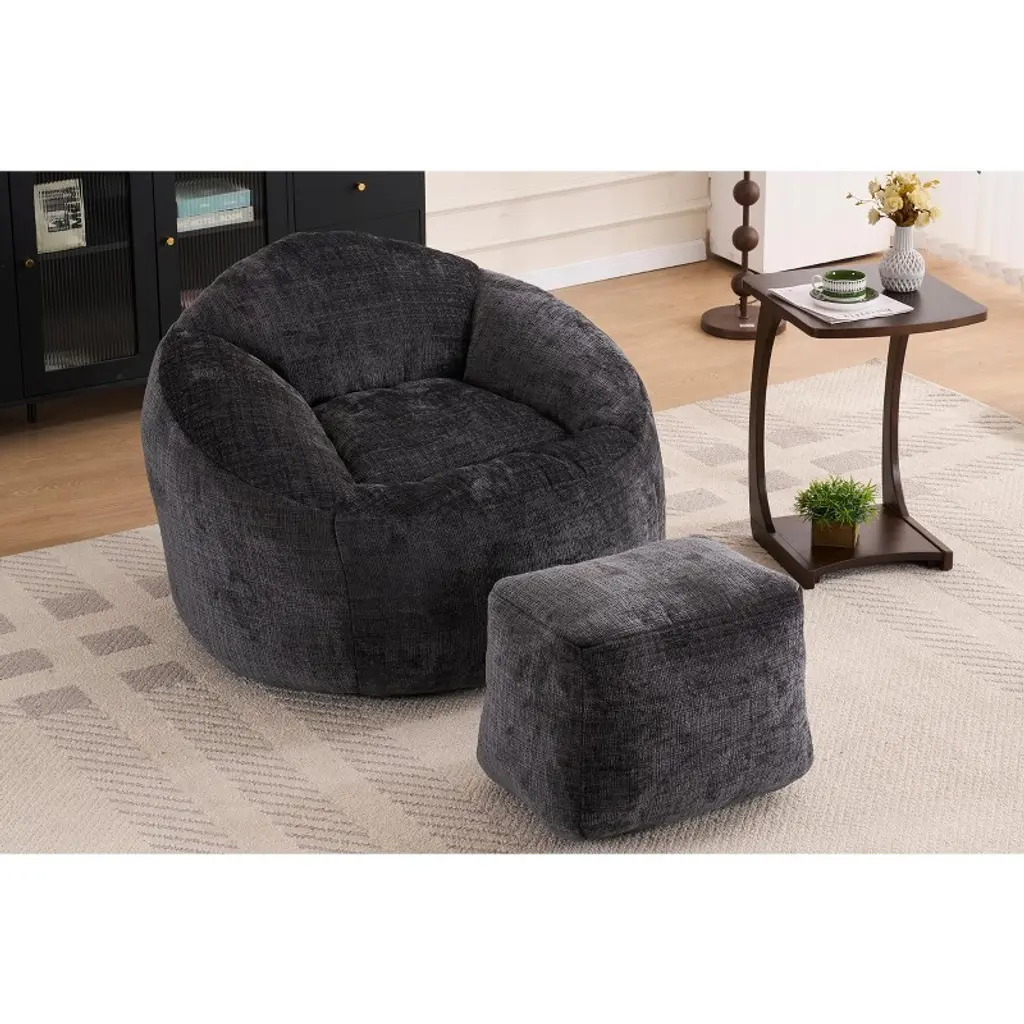 Lyngins Chenille Bean Bag Chairs For Kids And Adults,comfy Lazy Chairs With Plush Foam And Footrest For Living Room,black