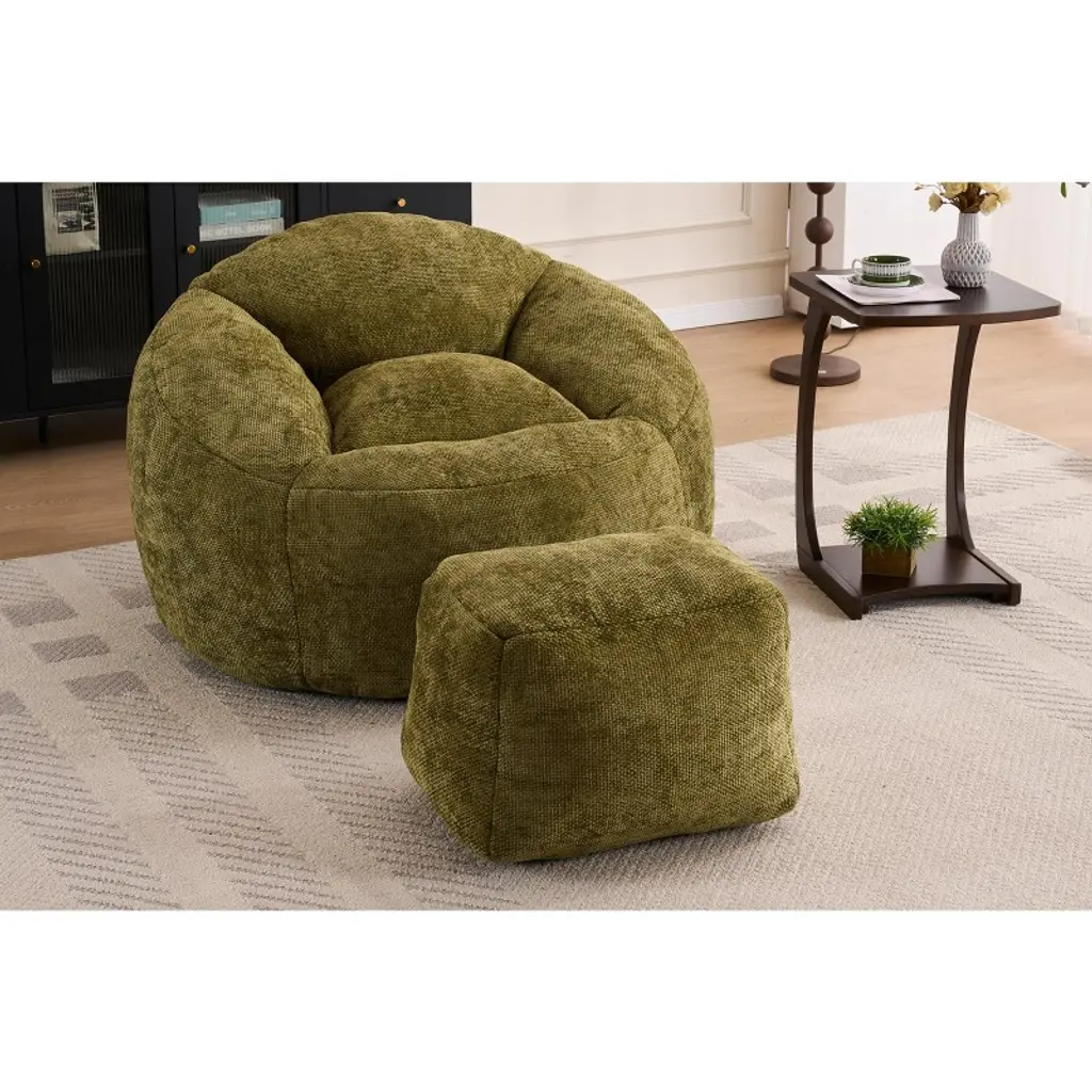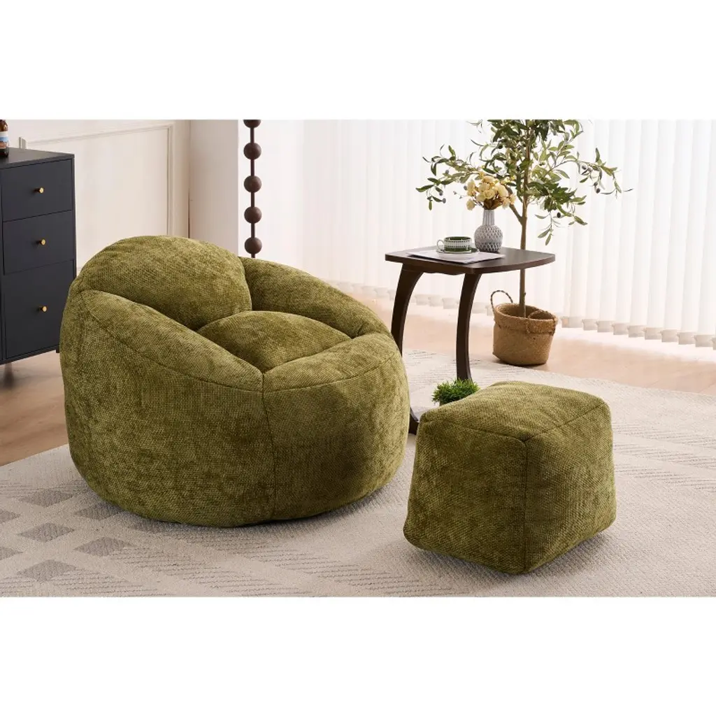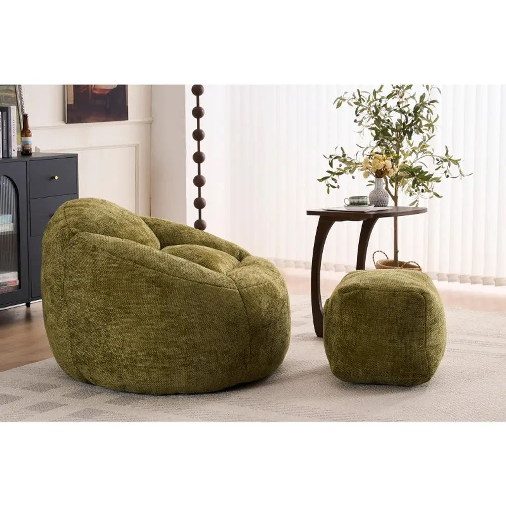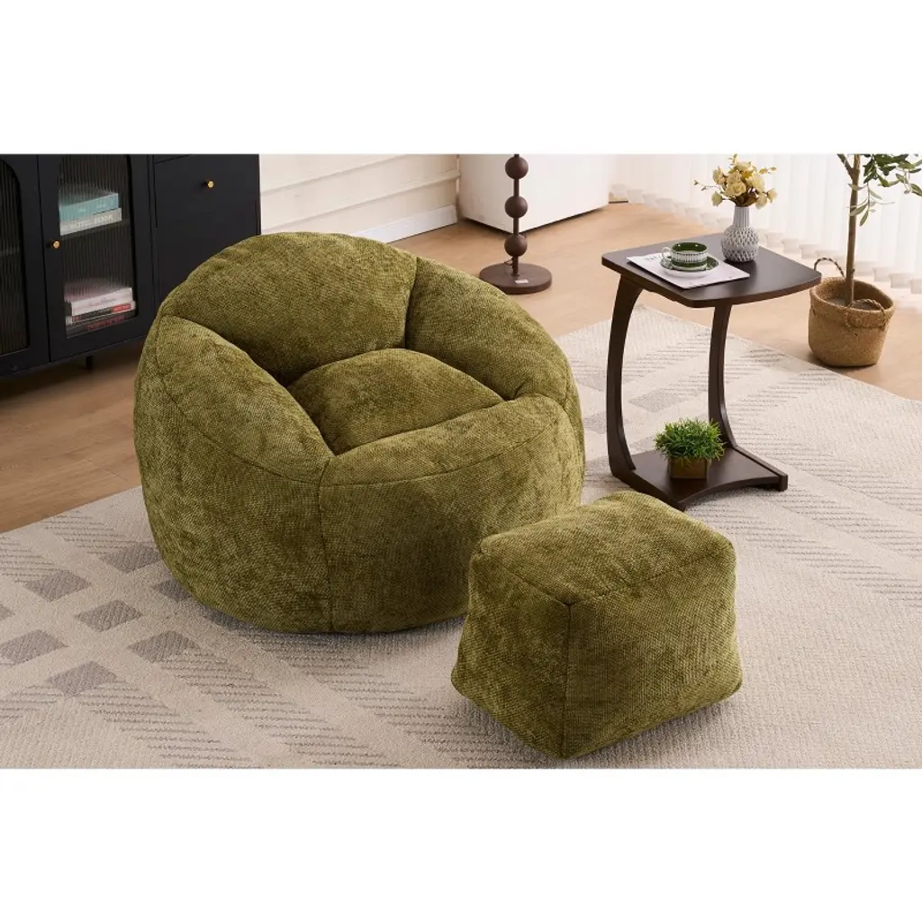 Lyngins Chenille Bean Bag Chairs For Kids And Adults,comfy Lazy Chairs With Plush Foam And Footrest For Living Room,olive Green