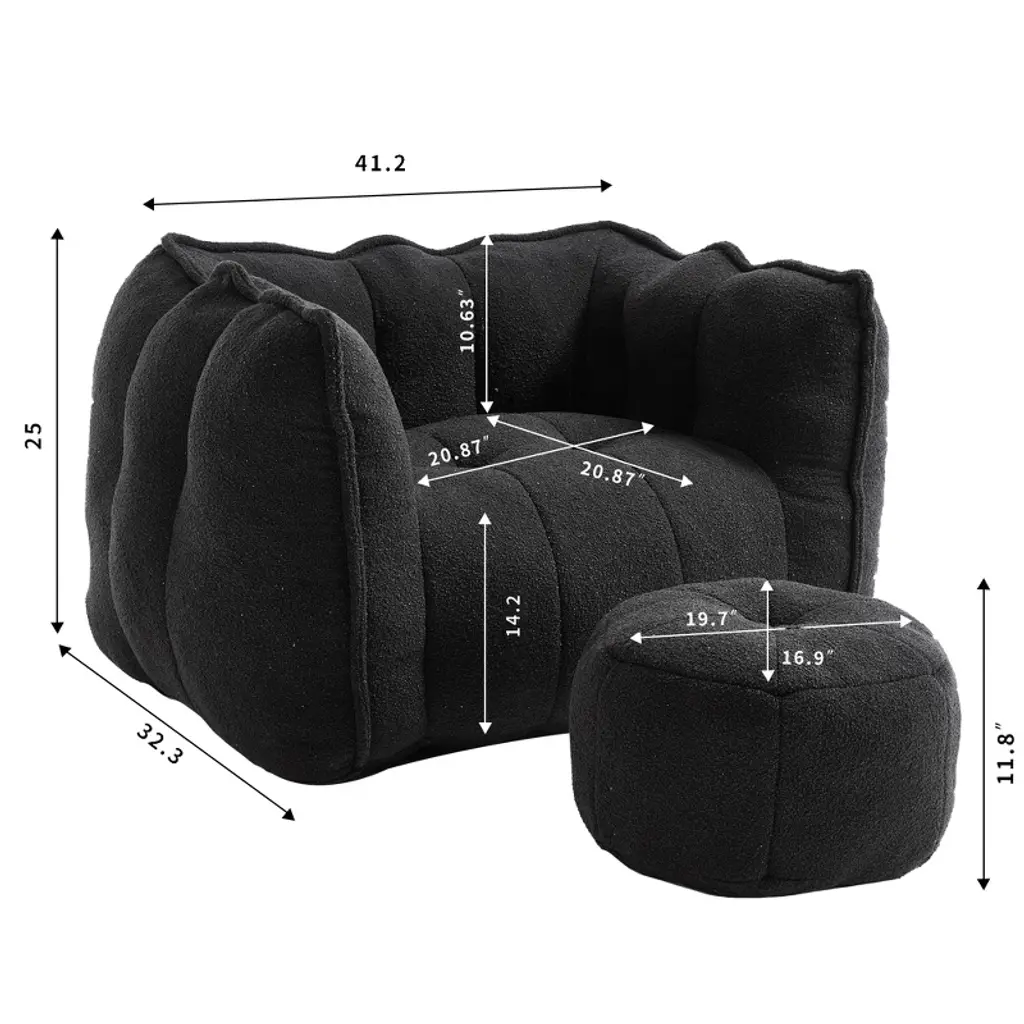 Lyngins Chenille Bean Bag Chairs For Kids And Adults,lazy Chairs With Footstool And High Resilient Foam(chips) For Living Room,black