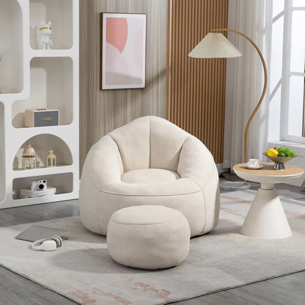 Lyngins Microfiber Fabric Bean Bag Chairs For Kids And Adults,lazy Chairs With Footrest And High Pressure Foam For Living Room,beige