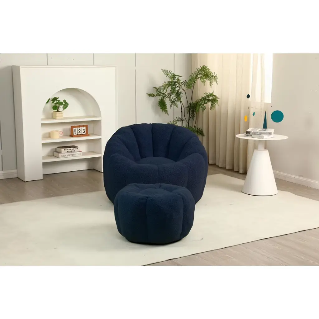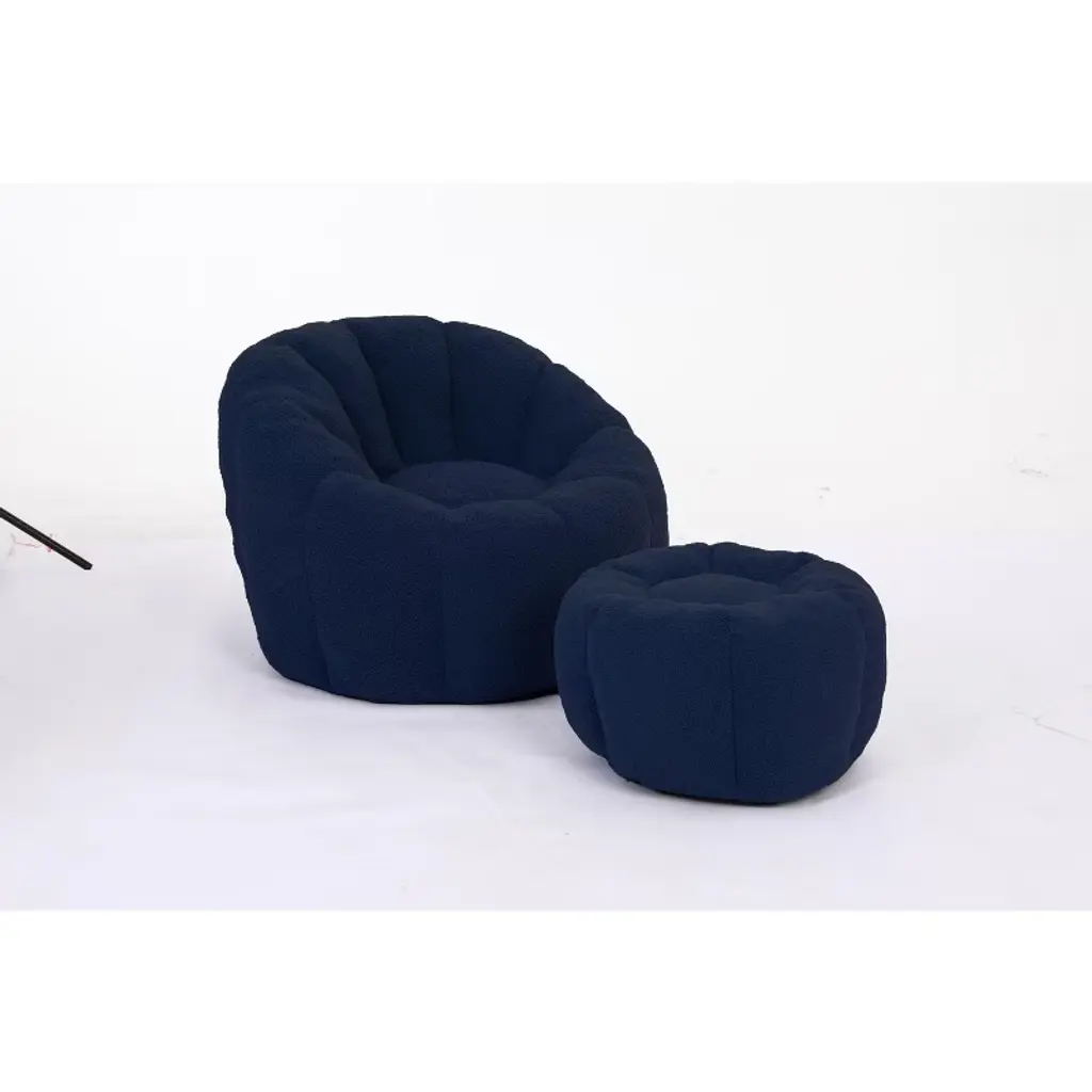 Lyngins Teddy Fabric Bean Bag Chairs For Kids And Adults,comfy Lazy Chairs With Memory Foam And Footstool For Living Room,dark Blue