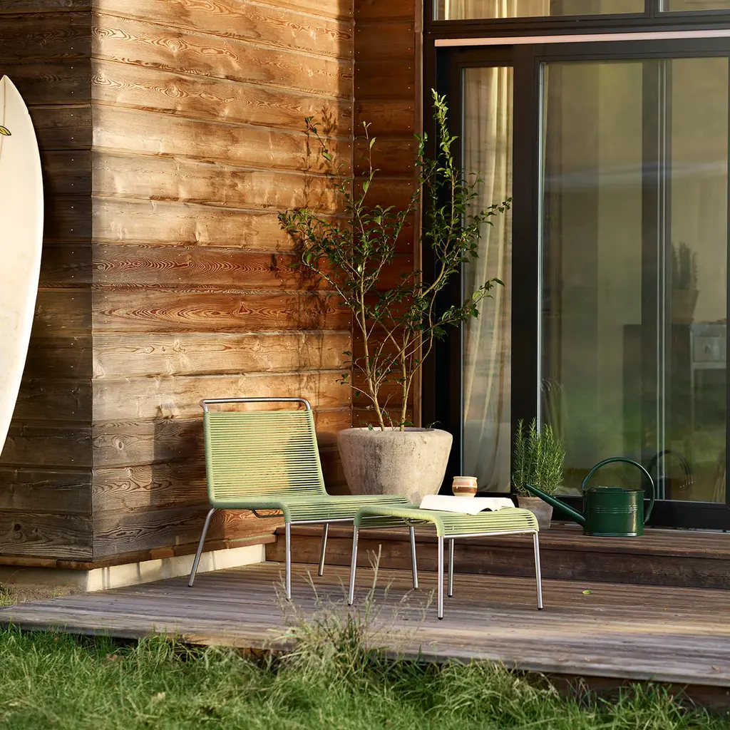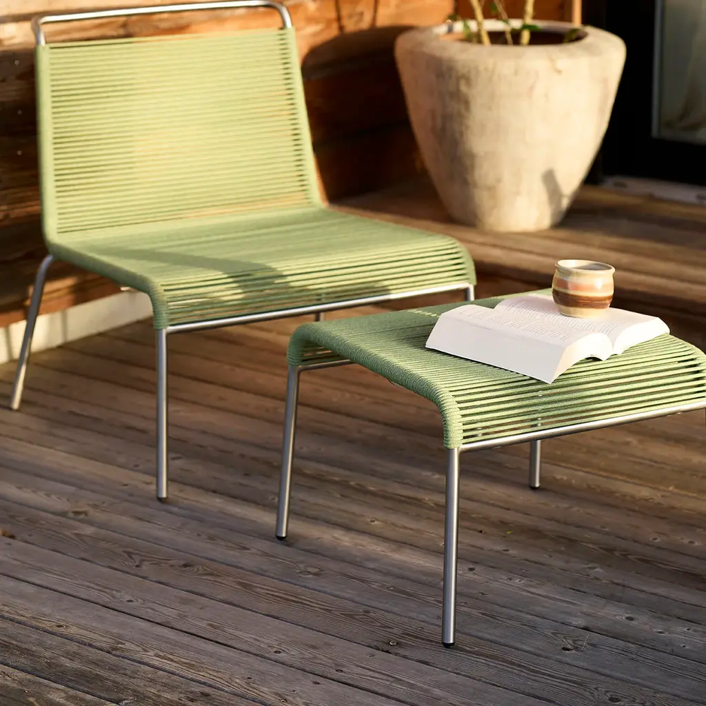 The M20S Teglgaard Outdoor Footrest complements the minimalist Teglgaard series by Salto & Sigsgaard with its sleek, functional design. Crafted from brushed stainless steel and woven polyester cords, it offers a lightweight, transparent, and weather-resistant solution that endures Denmark’s changing climate. This elegant footrest enhances outdoor comfort while maintaining sophisticated style. Highlights
