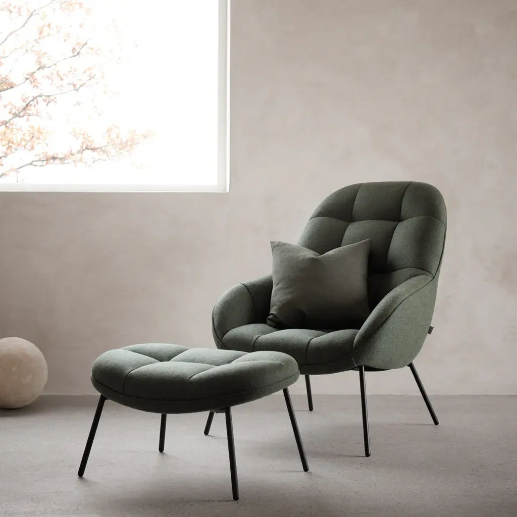The Mango Footstool breathes contemporary life into a classic silhouette. The soft, rolling inside of the ottoman was inspired by a the mango fruit, cut in a square pattern flipped inside and out. A slice of fun in an elegant shell makes the Mango a versatile and very comfortable footstool that perfectly goes with the Mango Chair. For maintenance of fabric, please contact your retailer.