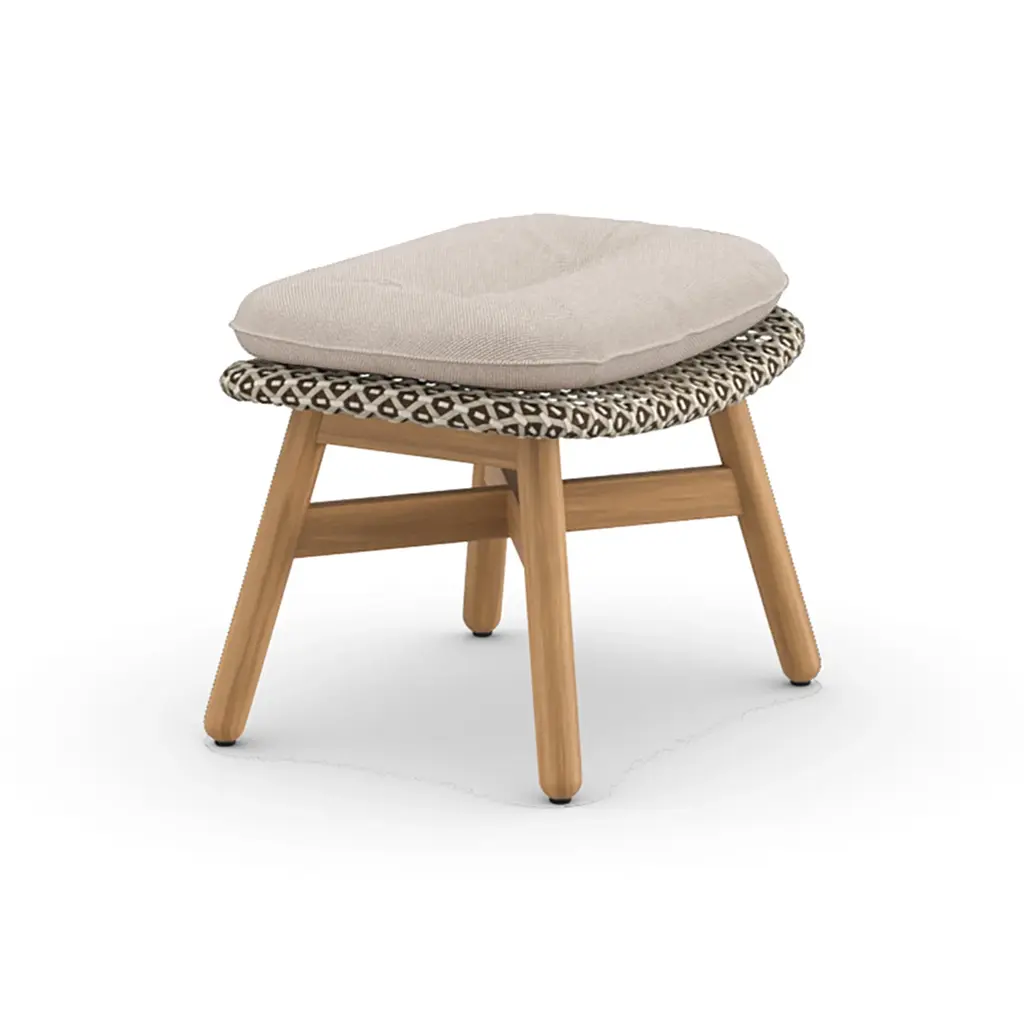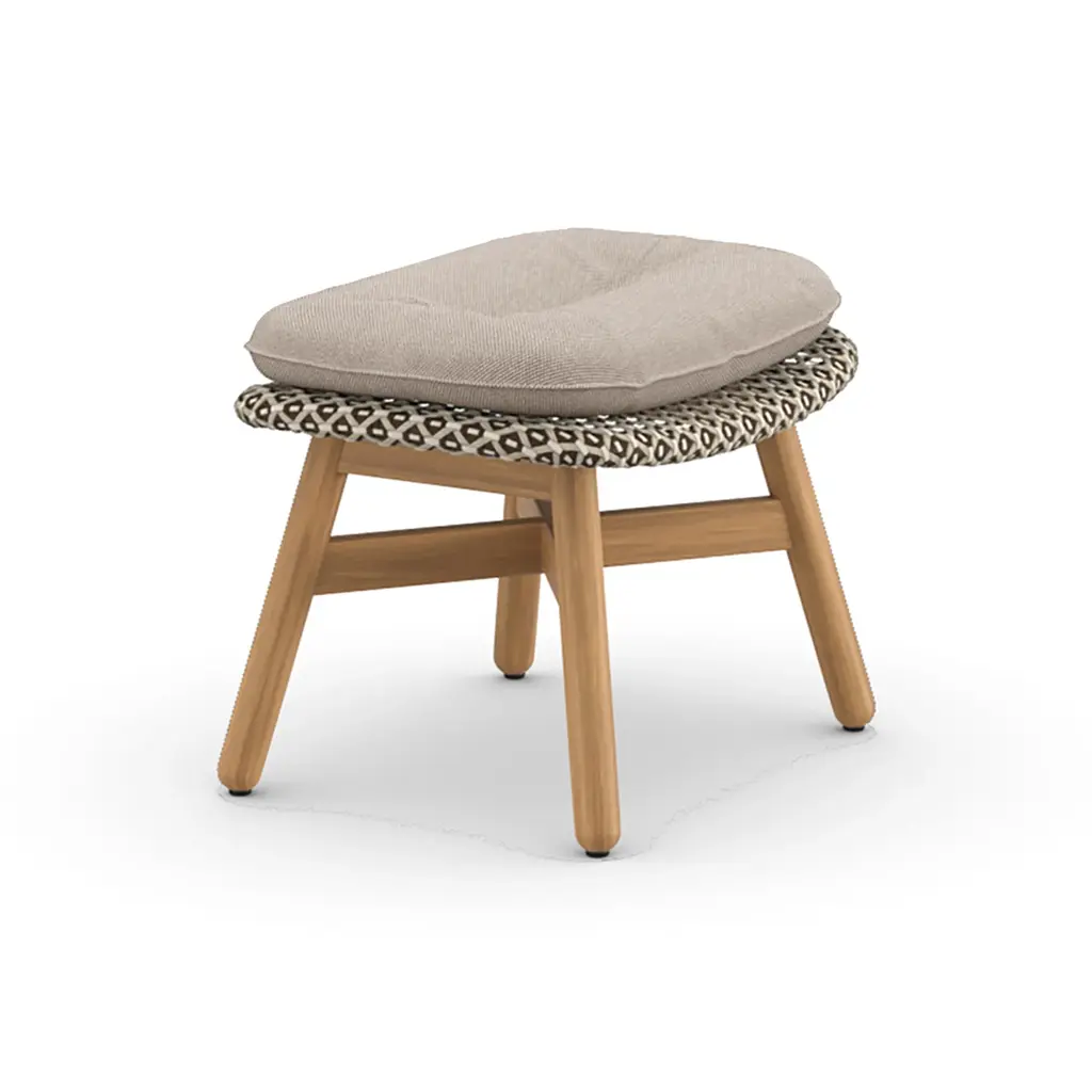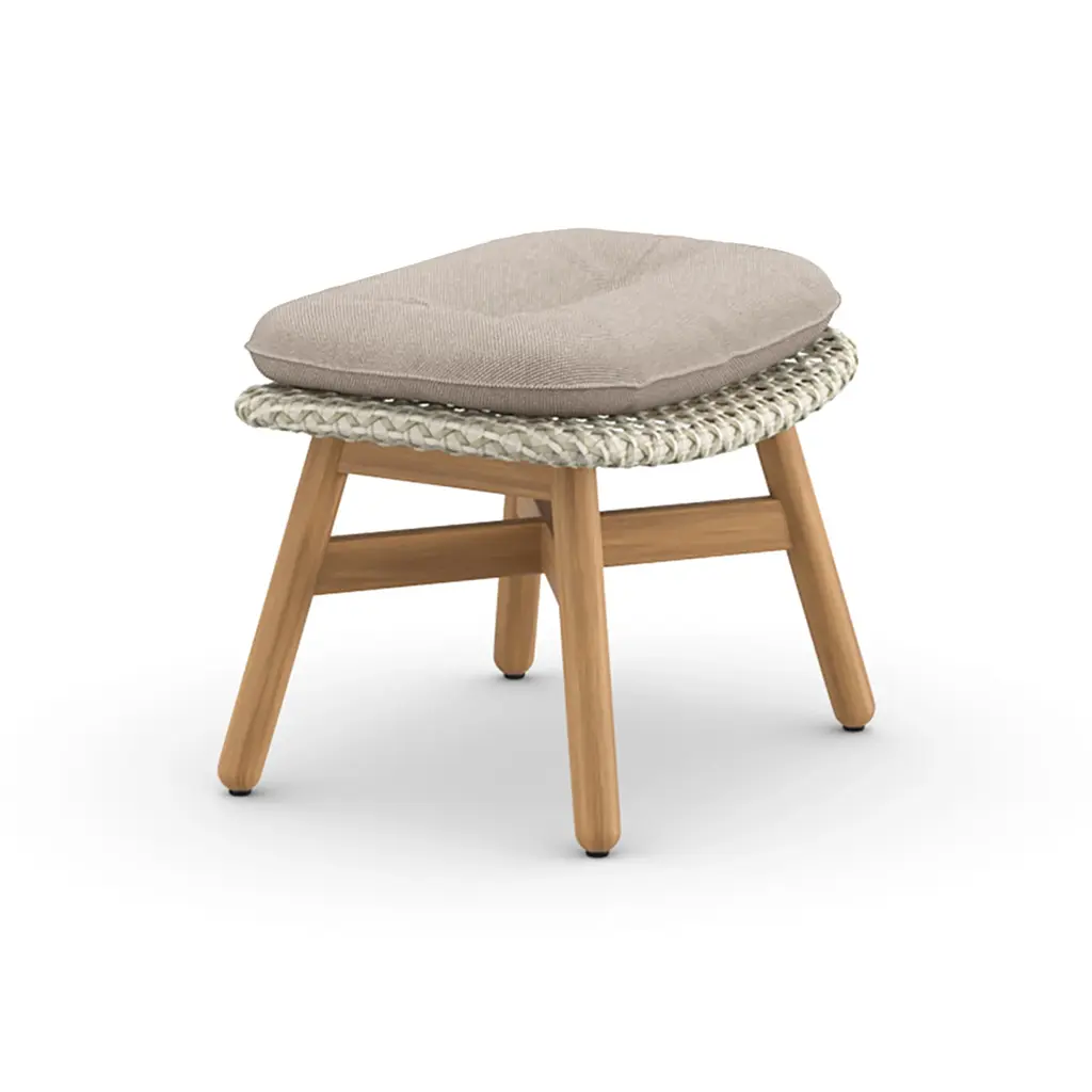 Add additional comfort to your favorite outdoor relaxation spaces with the MBRACE Footstool from Dedon. Showcasing a sturdy, yet comfortable design, this foot stool is crafted from solid teak, woven synthetic fibers, and topped with a plush cushion for extra comfort. Pair with any lounge chair from the MBRACE collection for a cohesive seating group ready for all-season living.Highlights