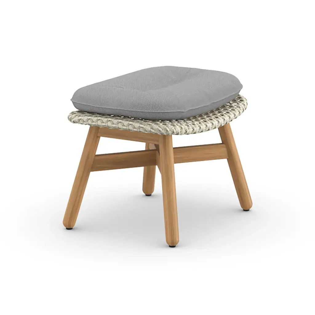 Add additional comfort to your favorite outdoor relaxation spaces with the MBRACE Footstool from Dedon. Showcasing a sturdy, yet comfortable design, this foot stool is crafted from solid teak, woven synthetic fibers, and topped with a plush cushion for extra comfort. Pair with any lounge chair from the MBRACE collection for a cohesive seating group ready for all-season living.Highlights