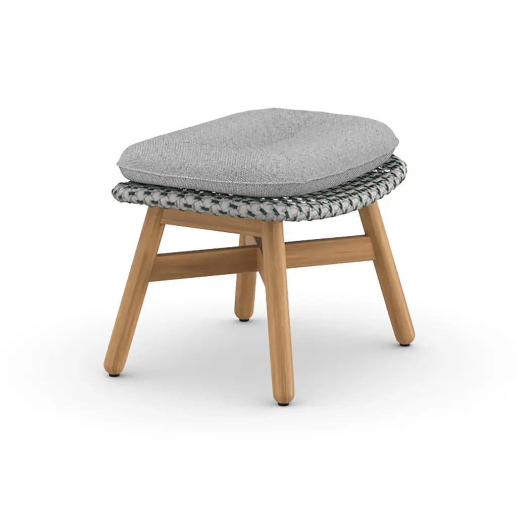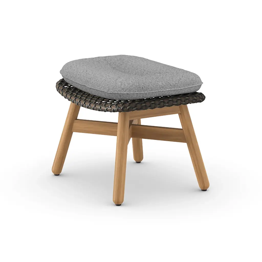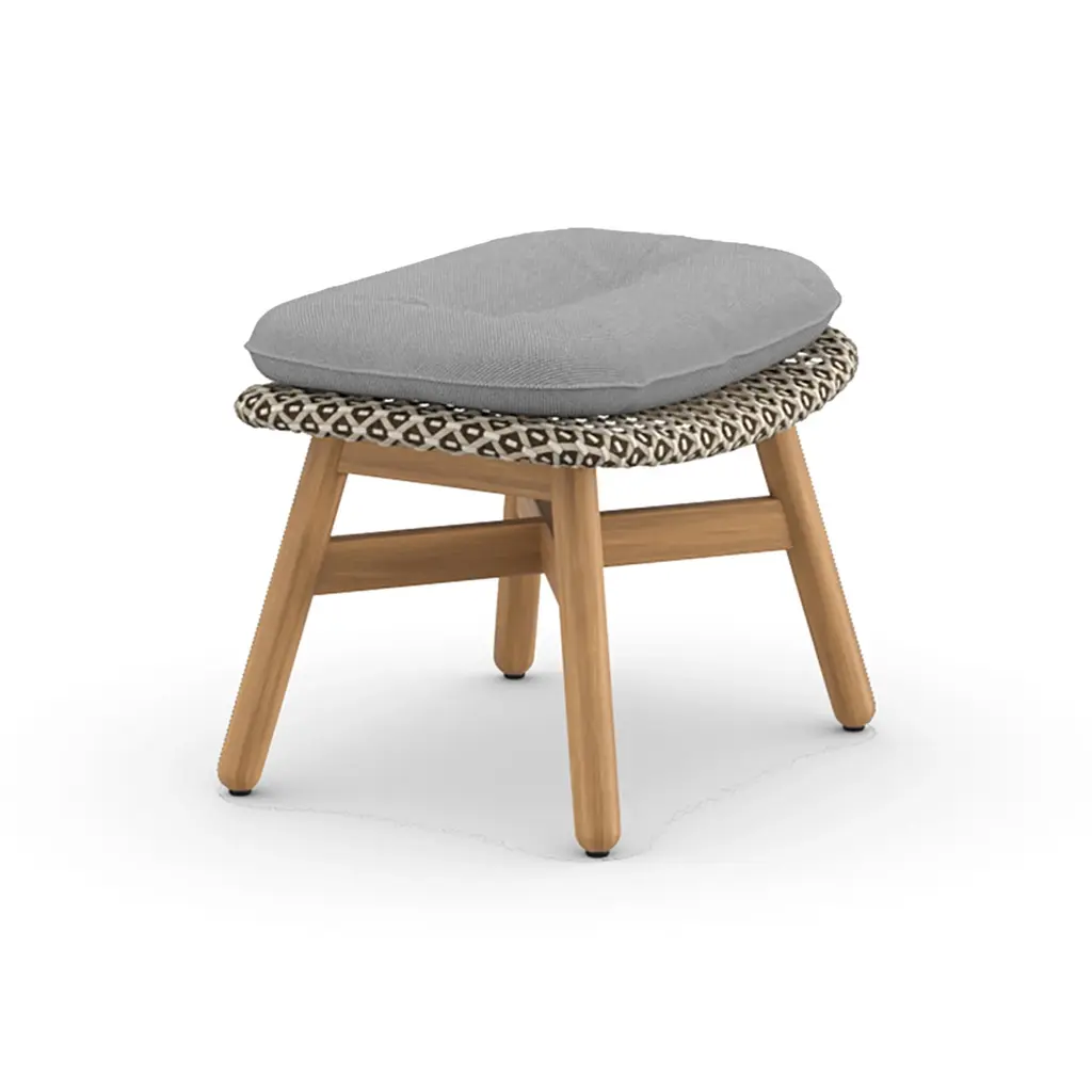 Add additional comfort to your favorite outdoor relaxation spaces with the MBRACE Footstool from Dedon. Showcasing a sturdy, yet comfortable design, this foot stool is crafted from solid teak, woven synthetic fibers, and topped with a plush cushion for extra comfort. Pair with any lounge chair from the MBRACE collection for a cohesive seating group ready for all-season living.Highlights