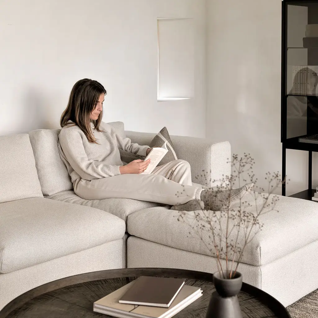 Comfort ideals form the basis of the Mellow. With clean and classic lines, paired with subtle seam detailing, the Mellow is the welcoming anchor to a liveable lounge space. Choose and place configurable pieces together to create a sofa tailored to your space, or enjoy the convenience of a pre-arranged set. Left Setup Includes:[2] 1 Seater[1] 90 Degree Round Corner[1] End seater - Left Arm[1] Footstool Right Setup Includes:[2] 1 Seater[1] 90 Degree Round Corner[1] End seater - Right Arm[1] Footstool