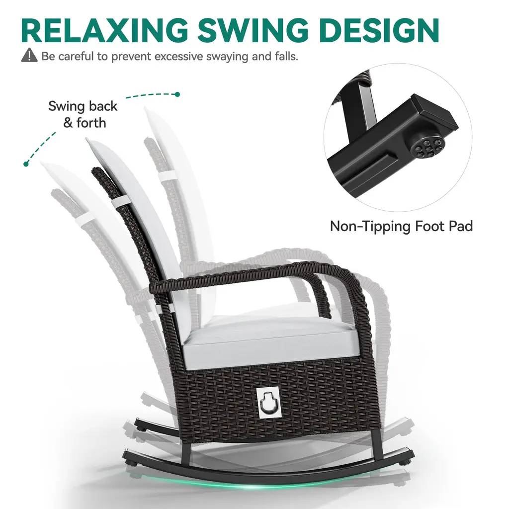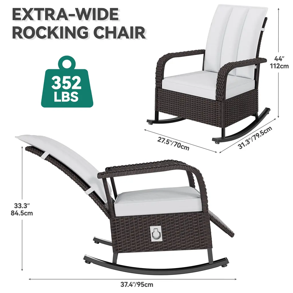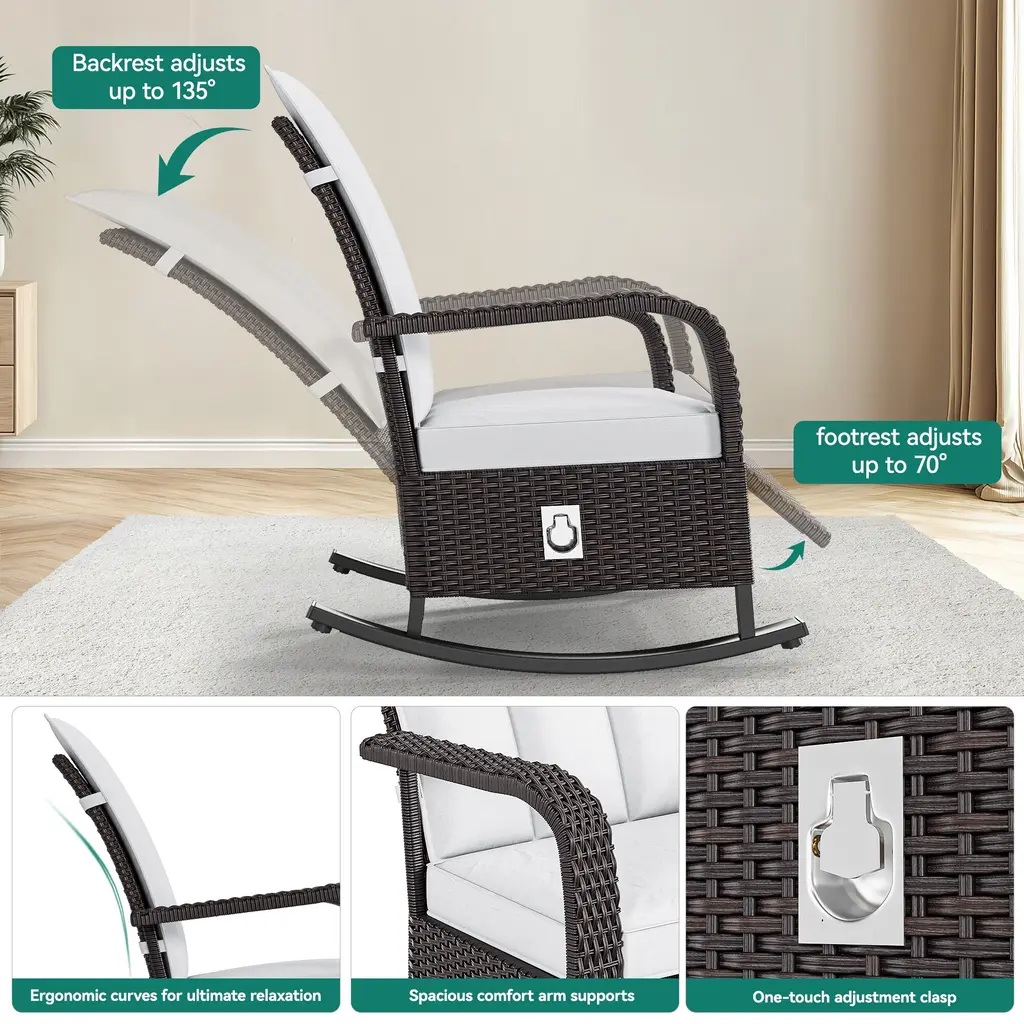 Moasis Outdoor Wicker Recliner Chair, Gliding/lounge Chair With Adjustable Back & Footrest, Cushions - Gliding Chair 2Pcs