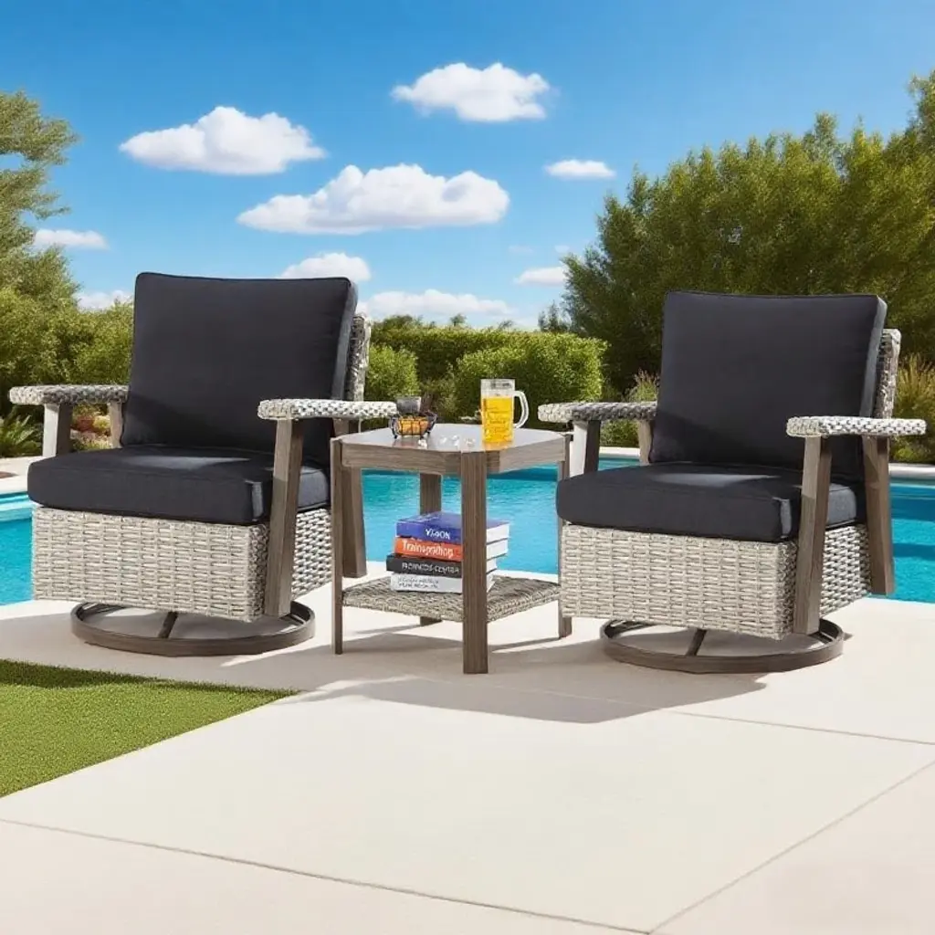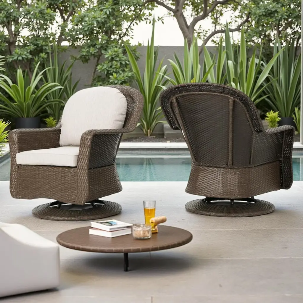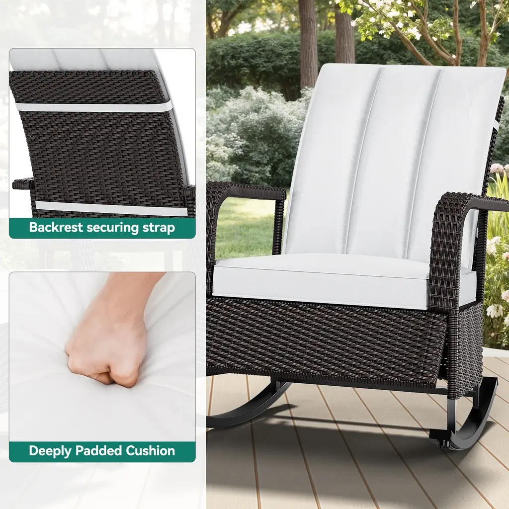 Moasis Outdoor Wicker Recliner Chair, Gliding/lounge Chair With Adjustable Back & Footrest, Cushions - Gliding Chair 2Pcs